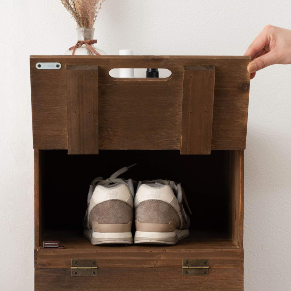 ●レトロな雰囲気の年月を経たような塗装を施した趣のある天然木シューズラックです。