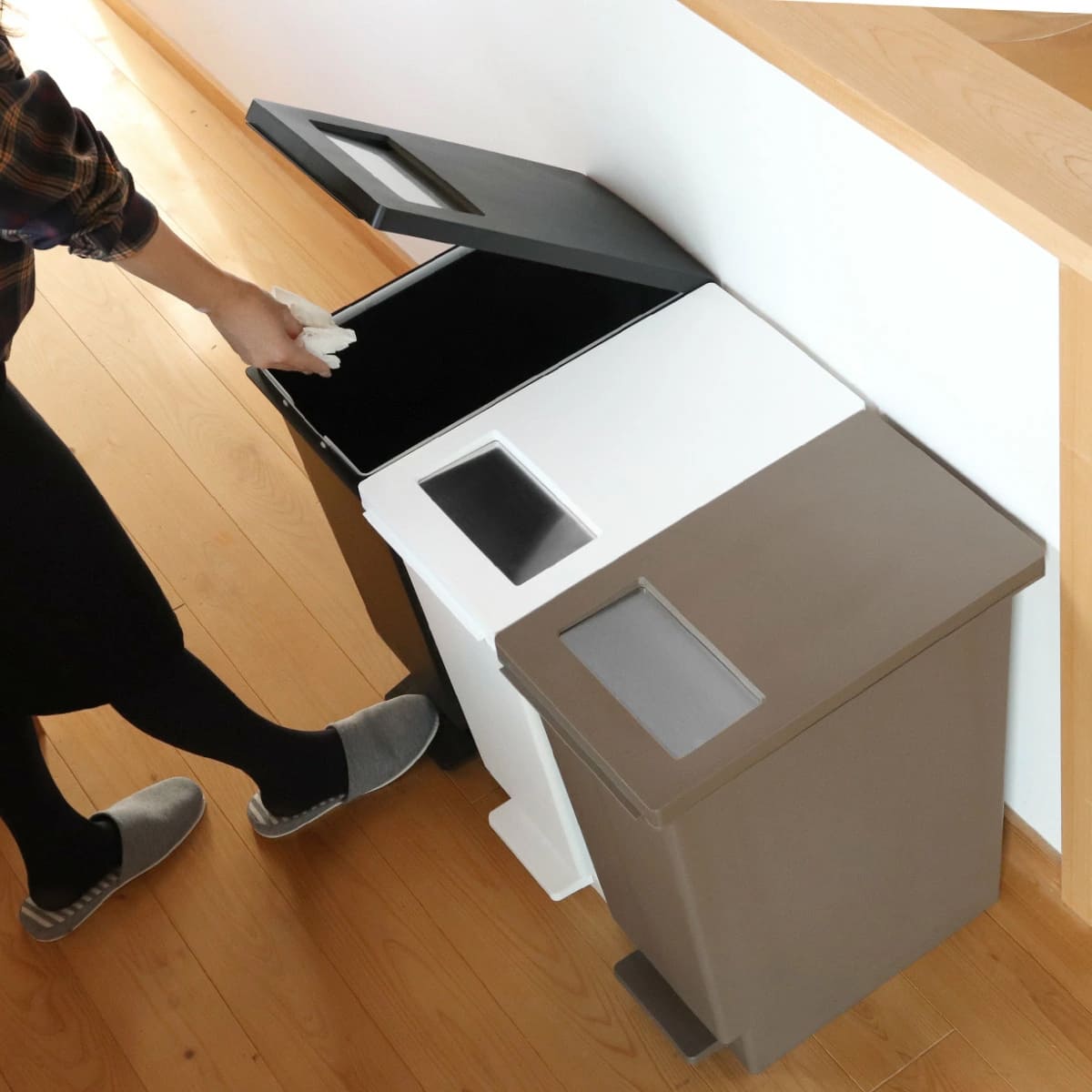 プッシュ&ペダル、2種類の開け方ができるダストボックス