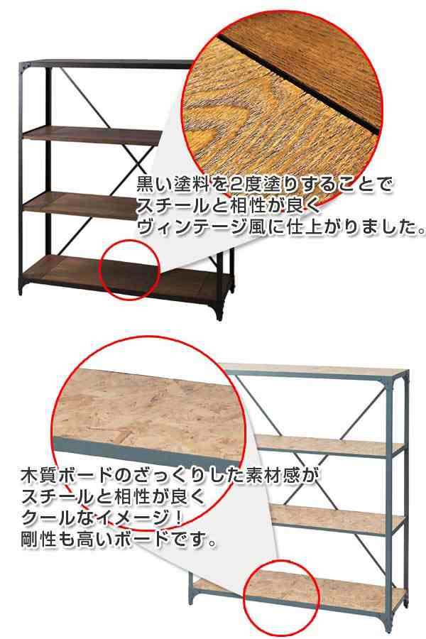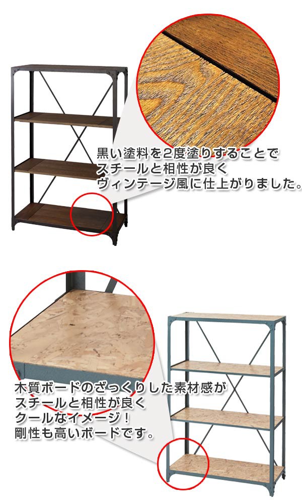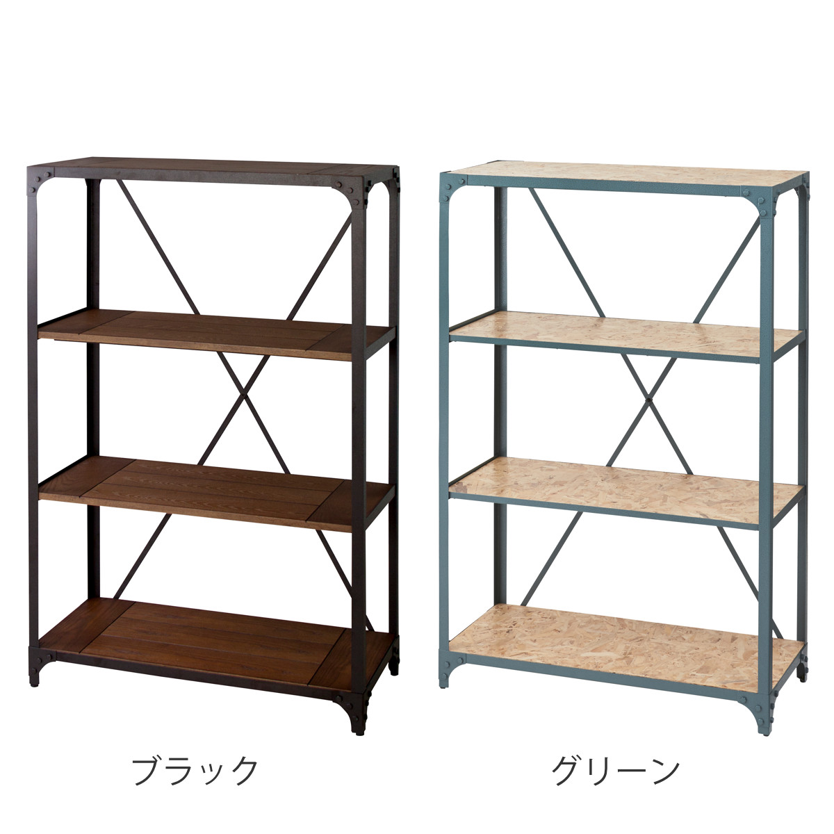 ブラックは、黒い塗料を2度塗りすることでスチールと相性が良く、ヴィンテージ風に仕上がりました。グリーンは、木質ボードのざっくりした素材感と、スチールとの相性が良く、クールなイメージです。収納スペースが広いので、沢山のものを置いて整理整頓できます。カバンや、洋服をお店のようにディスプレイしてもおしゃれです。