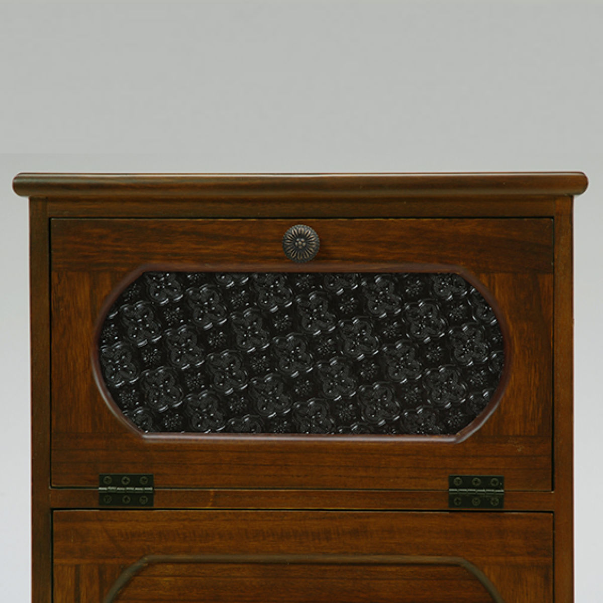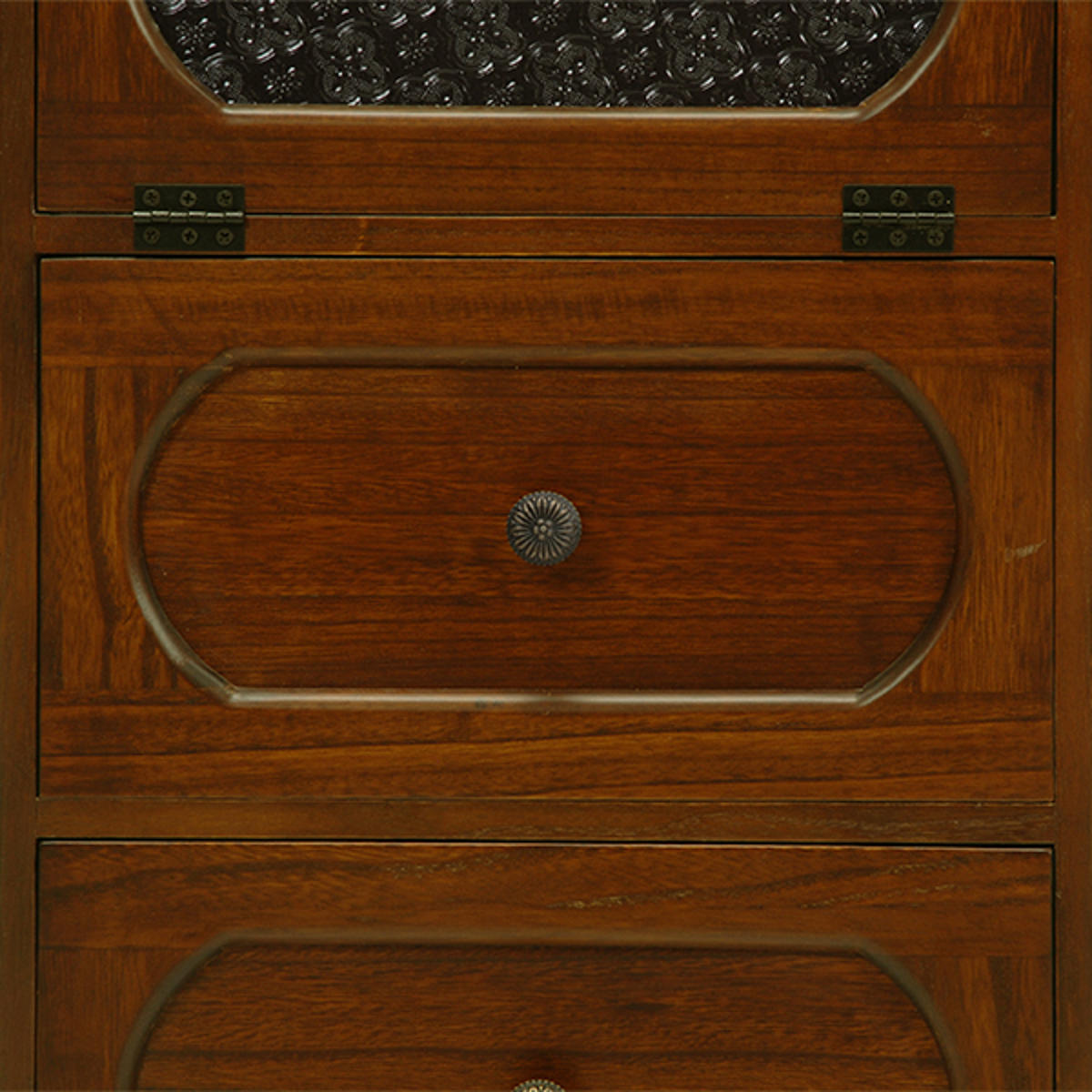 下段には小物などの収納に便利な引出しが2杯付いています。引出し前面に高級感のある框枠組み風加工を施しています。