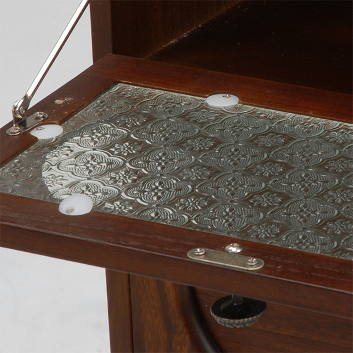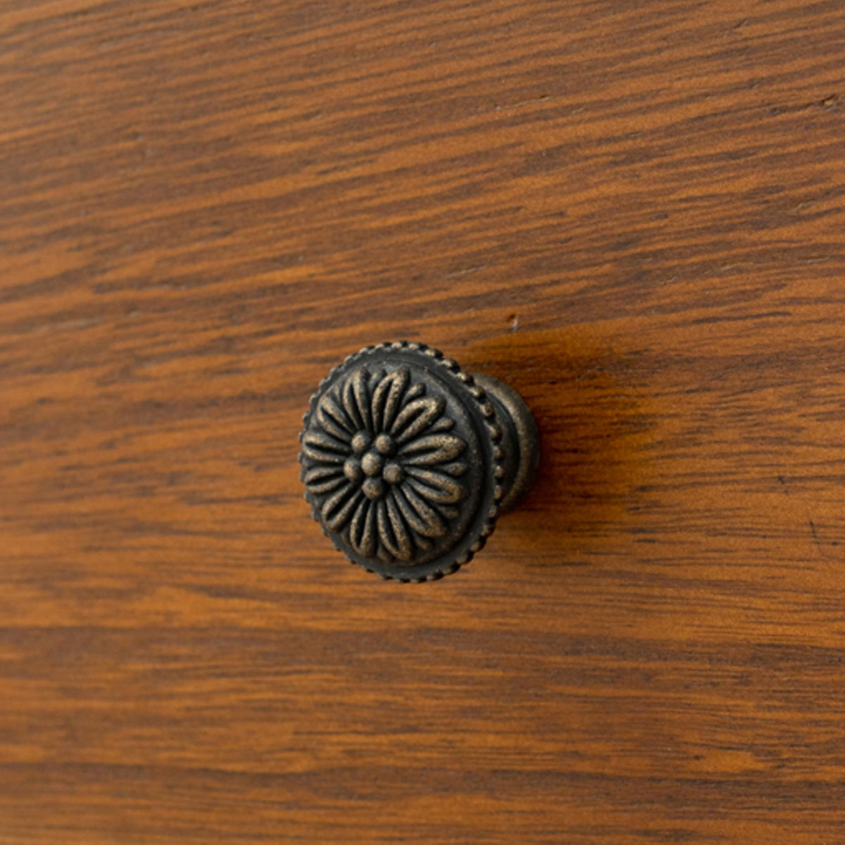 取っ手はアンティーク加工が施されており、お洒落な花柄がアクセントになっています。