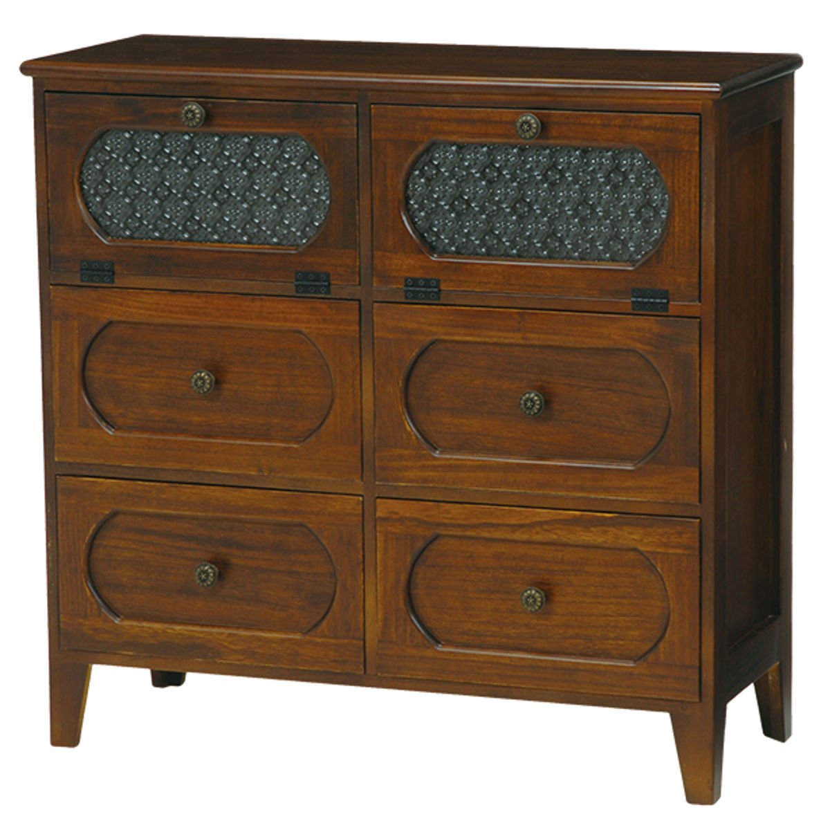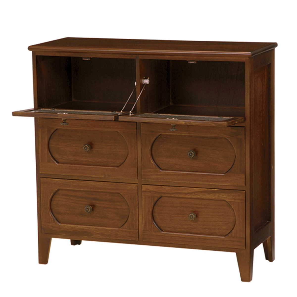 下段には小物や衣類の収納に便利な引出しが4杯付いています。引出し前面に高級感のある框枠組み風加工を施しています。