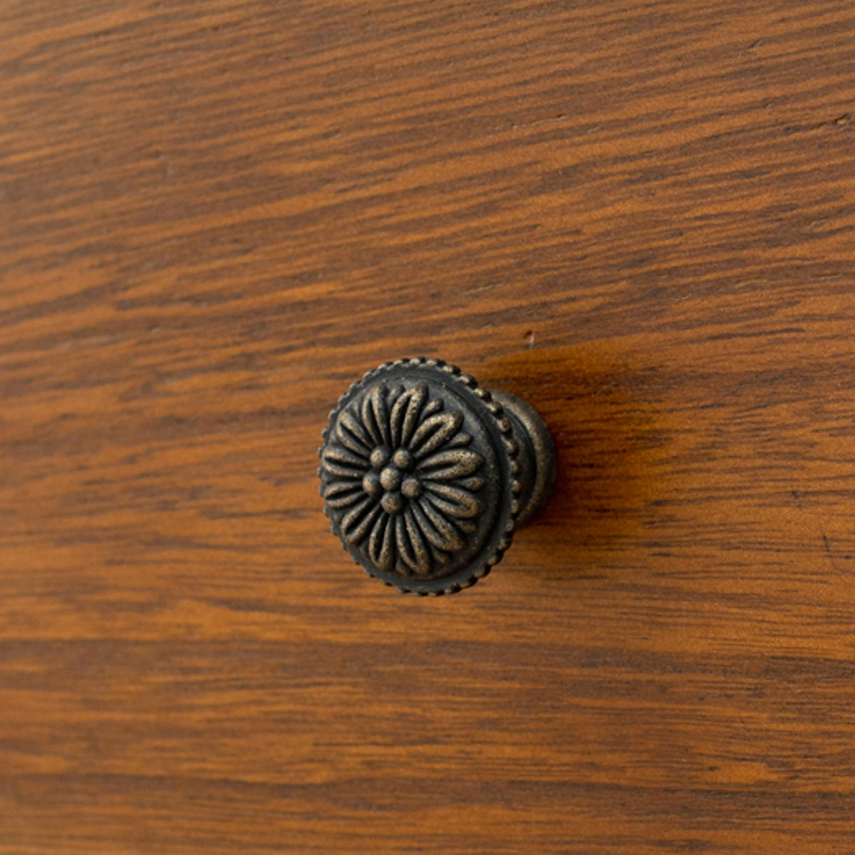 取っ手はアンティーク加工が施されており、お洒落な花柄がアクセントになっています。