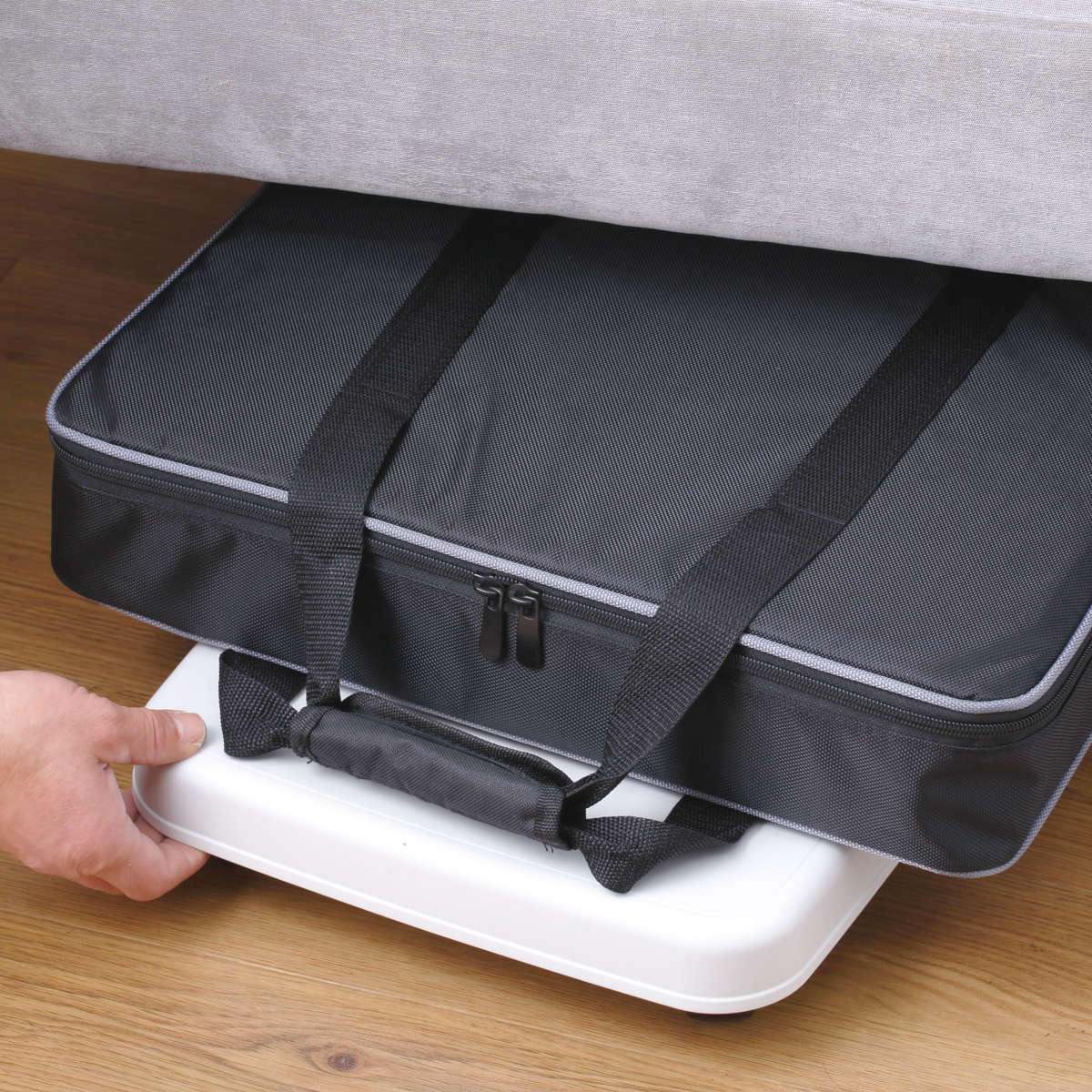 持ち運びが困難な箱買いしたペットボトルの飲料水や缶ビール。箱のまま置いてしまうと掃除に困りますが、ラクゴロの上に乗せれば、ラクラク移動ができて、お掃除もスイスイ捗ります。お米の一時保管場所としても重宝します。