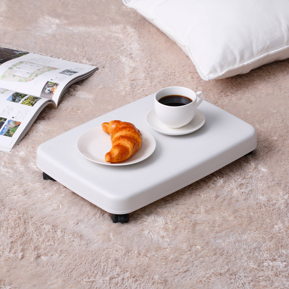 コーヒーやスイーツと一緒に、リビングや寝室などでリラックスした時間を過ごす際のローテーブルとしても活用できます。ソファやベッド、ベランダやお庭でも簡単に持っていくことができます。