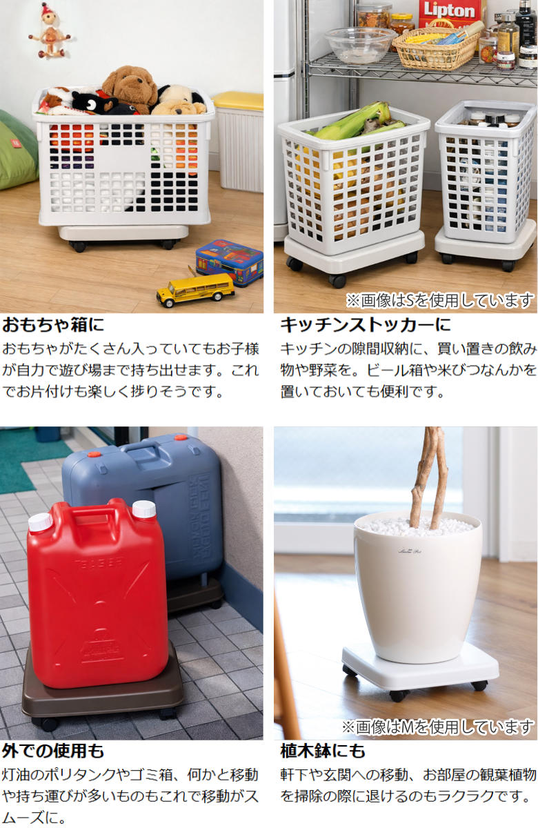 キャスターが付いていないものや重い物を移動するのに便利なアイテムです。Lサイズは耐荷重が28kgで、持ち運びが困難な観葉植物の鉢や除湿器、瓶ボトルやお米、書類ケースなどにおすすめのサイズです。