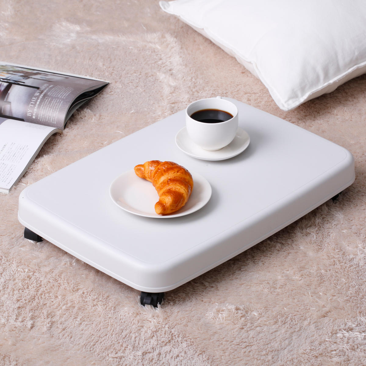コーヒーやスイーツと一緒に、リビングや寝室などでリラックスした時間を過ごす際のローテーブルとしても活用できます。ソファやベッド、ベランダやお庭でも簡単に持っていくことができます。