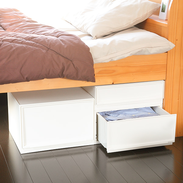 並べて重ねて自分好みにアレンジできる引き出しタイプの収納ケースです。リビングはもちろん、子ども部屋でお子さまの洋服やおもちゃを入れたり、洗面所でタオルや洗剤・シャンプーなどのストック入れにも最適です。3種類の高さ(S・M・Lサイズ)と2種類の幅(スリムタイプ・ワイドタイプ)から選んで組み合わせてお部屋にあった自分スタイルの収納にカスタマイズできます。