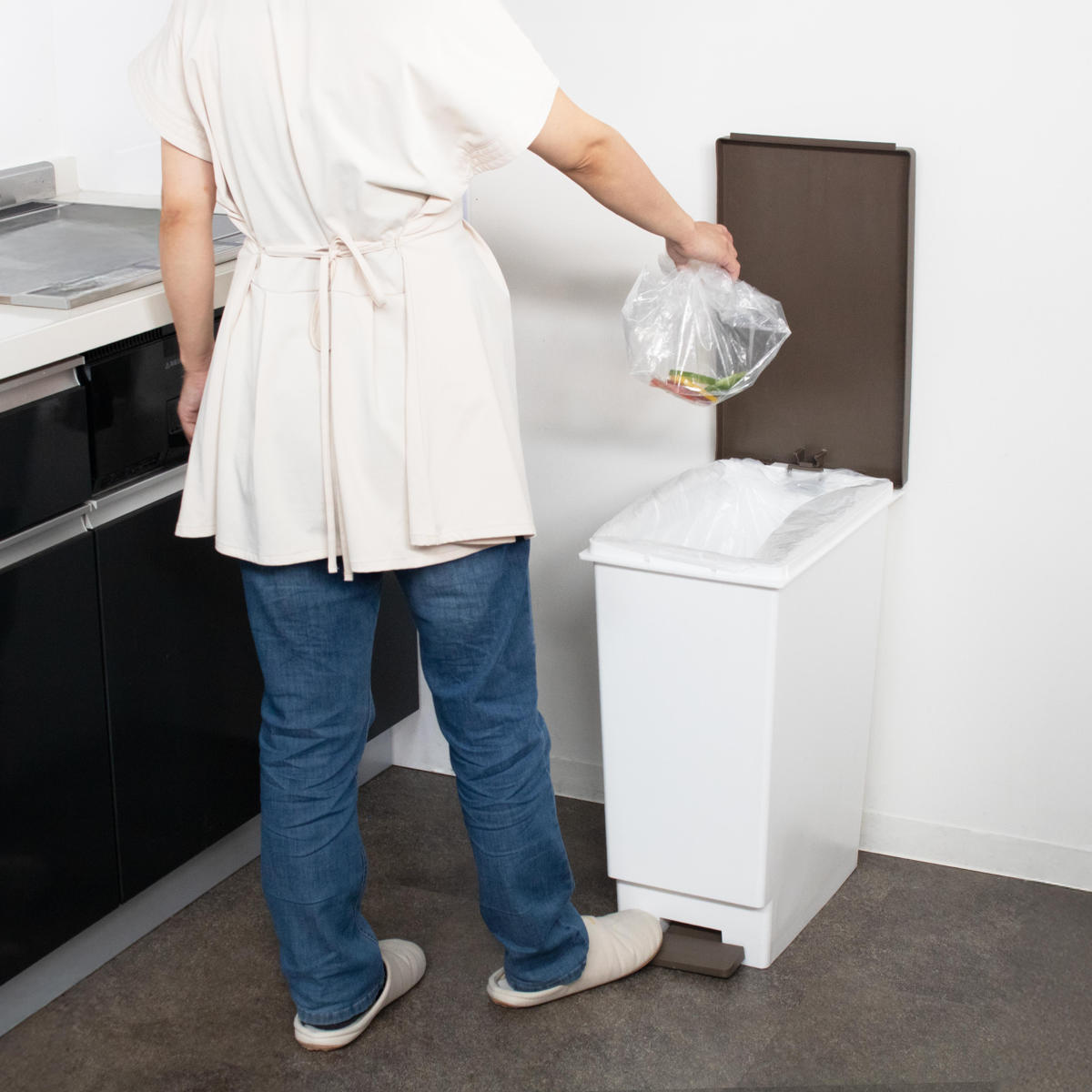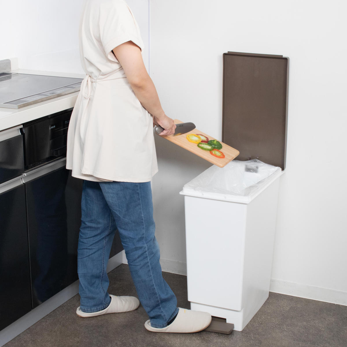 両手がふさがっていてもゴミを捨てられるので、忙しい調理中に大活躍します。ゴミ箱に手を触れたくないという方にも、衛生的でおすすめです。