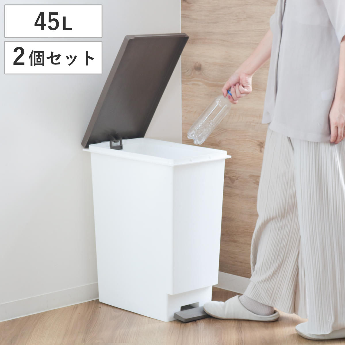 足で軽く踏むだけでサッと開く、ペダル式のゴミ箱です。手がふさがっていたり汚れていても、フタを開けられるのでとても便利。踏みやすい大きめのペダルで、スムーズにゴミを捨てられます。使い勝手の良い45Lサイズは、ゴミの分別にも適した容量です。