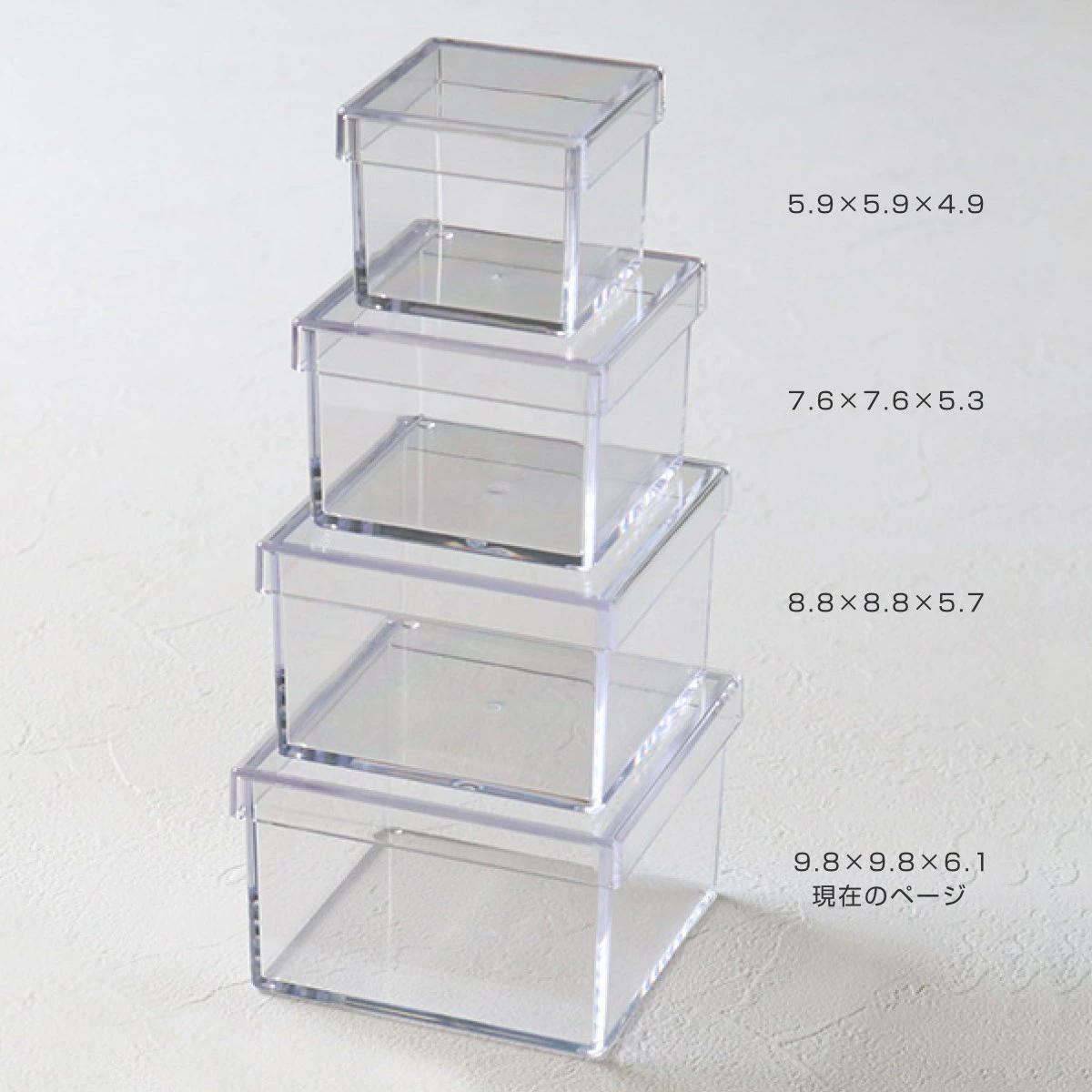 ![]() 幅5.9×奥行5.9×高さ4.9(cm) | ![]() 幅7.6×奥行7.6×高さ5.3(cm) | ![]() 幅8.8×奥行8.8×高さ5.7(cm) |