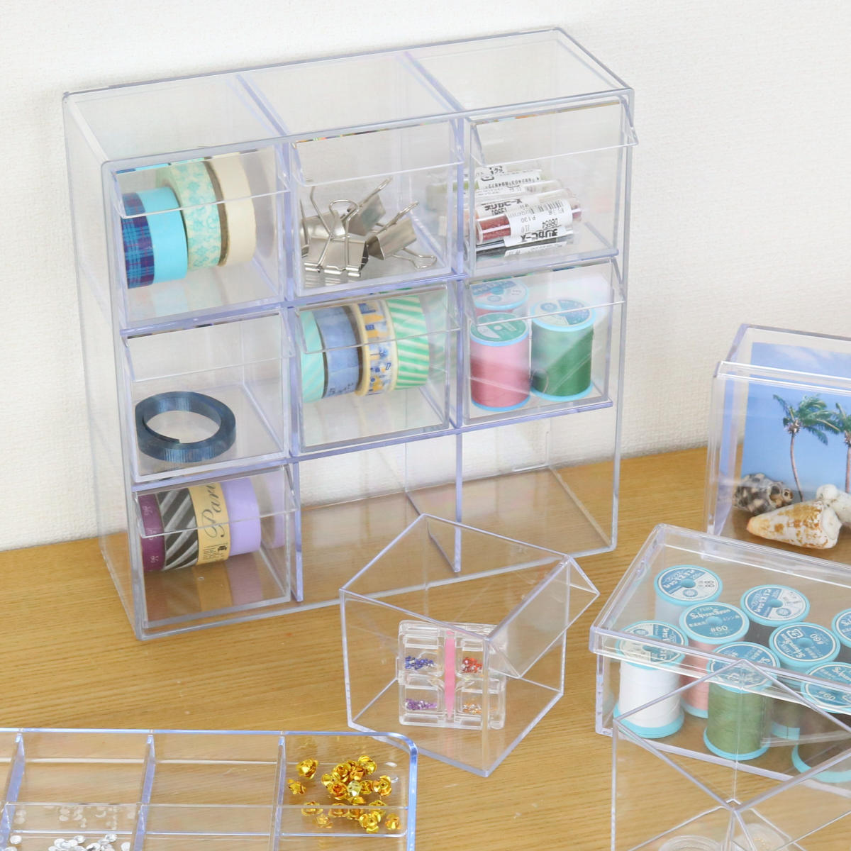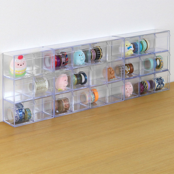 | サイズ | 外寸:約 幅24×奥行9.6×高さ24(cm) 内寸:約 幅6.6×奥行6.7×高さ7.2(cm) ※内寸は引出し1個あたりのサイズ |