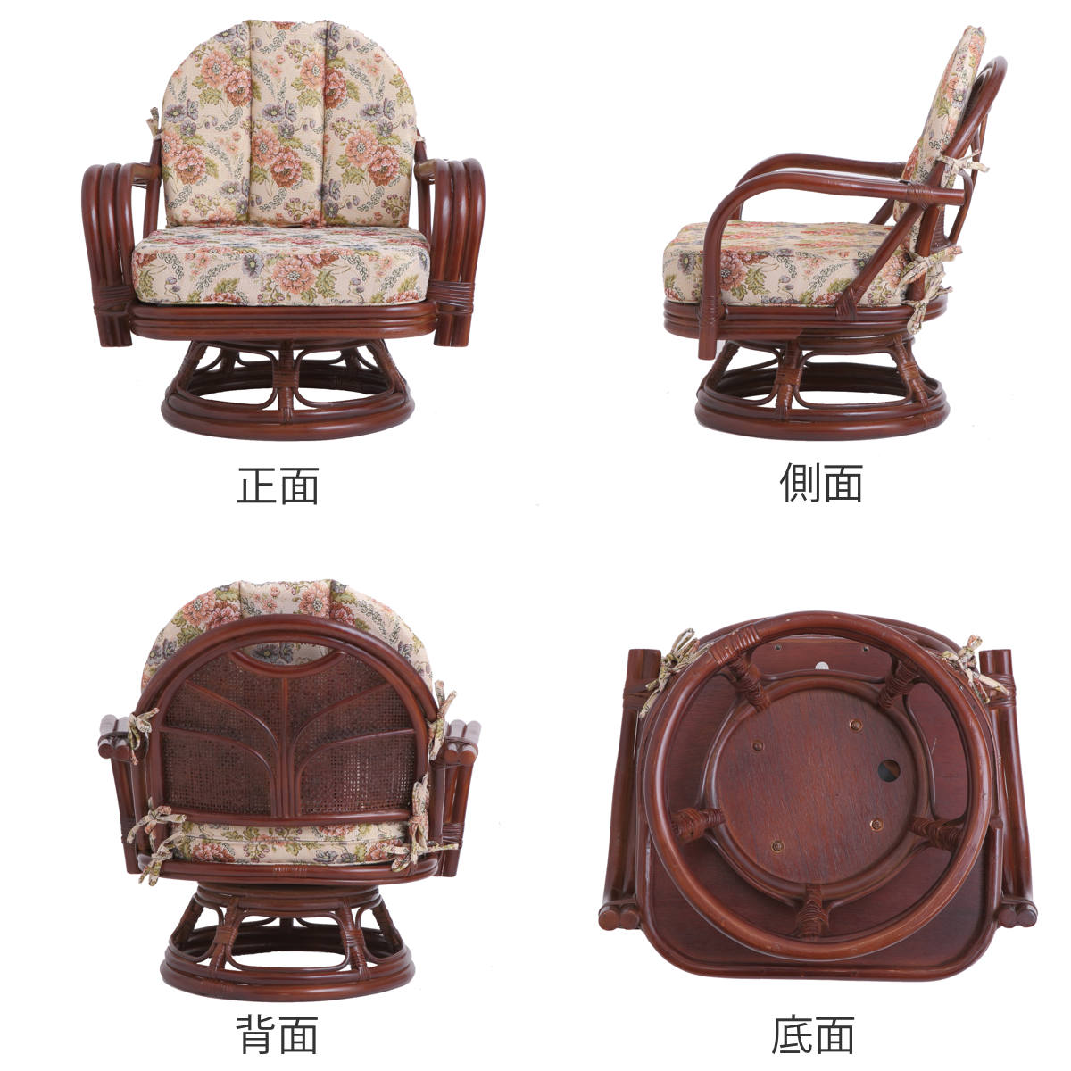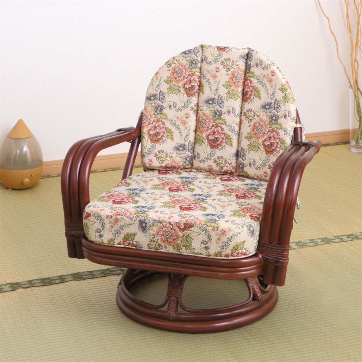 上品な花柄が美しい籐製の回転座椅子