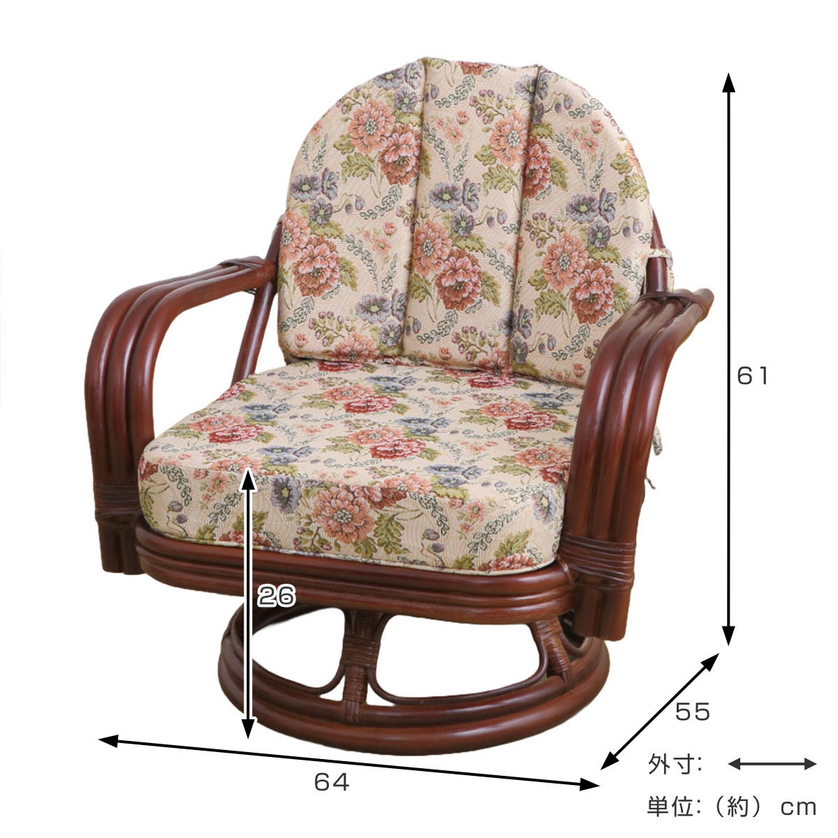 | サイズ | 約 幅64×奥行55×高さ61(cm) 座面高:約 26(cm) |
