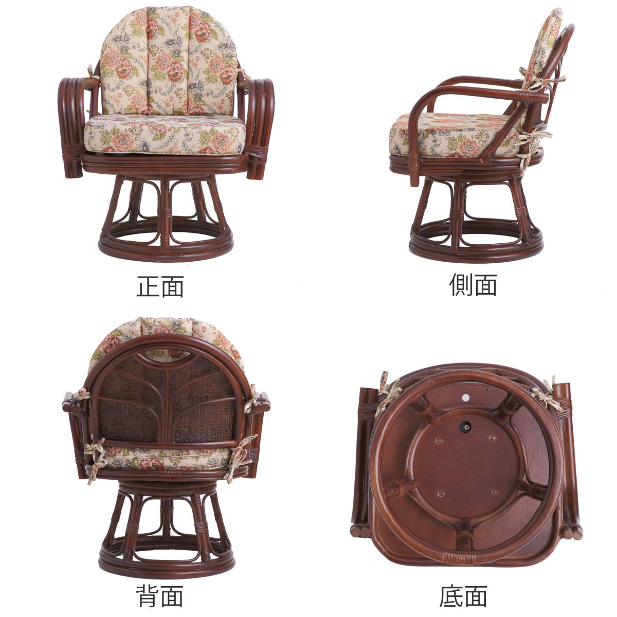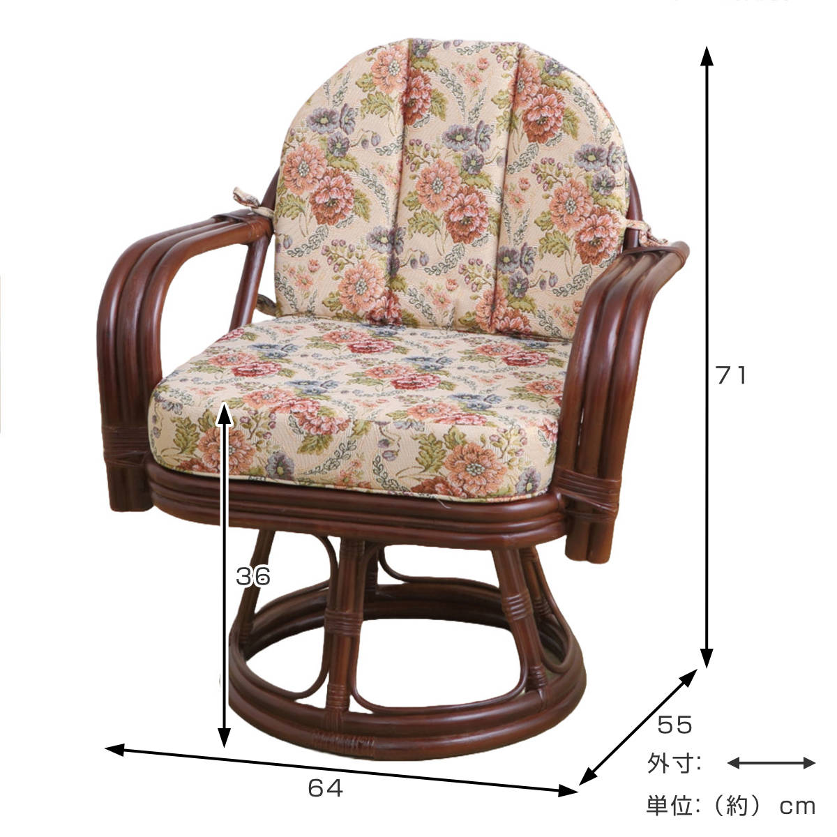 天然素材ラタンの風合いを感じる回転座椅子 座面高36cm