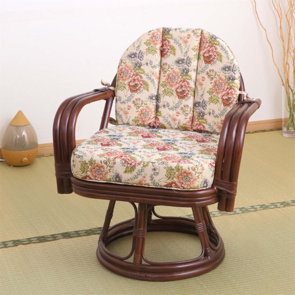 天然素材、ラタンを贅沢に使用した回転座椅子です。ダイニングでも使いやすい座面高36cmで、ゆったりと座っていただけます。ラタン製の座椅子は通気性がよく年中快適。天然素材の風合いと温もりが、くつろぐ時間にぴったりです。