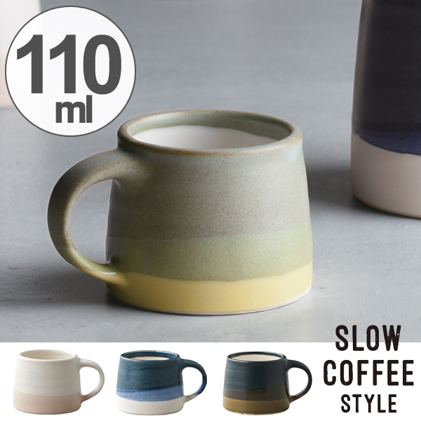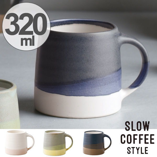 ろくろによる手跡と、絵の具のにじみのような柄が柔らかい雰囲気のマグです。質感が異なる光沢とマットの釉薬を重ねたデザインがコーヒーの時間を演出します。心地よく手に馴染むように緩やかなかたちにし、本体とハンドルを大きな曲面でつなげることで、持ちやすく見た目にも柔らかい印象です。