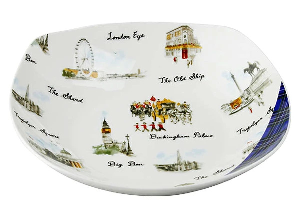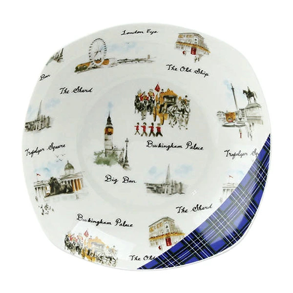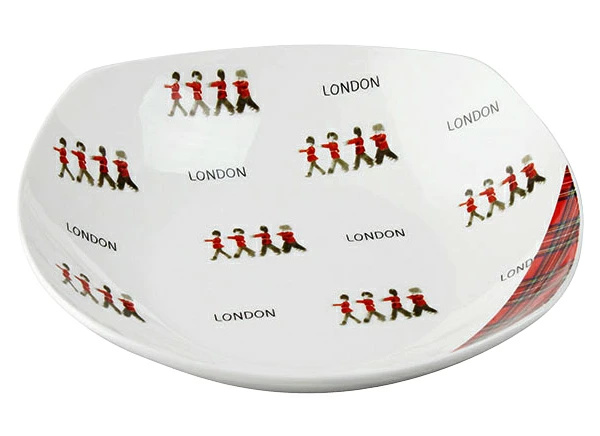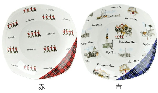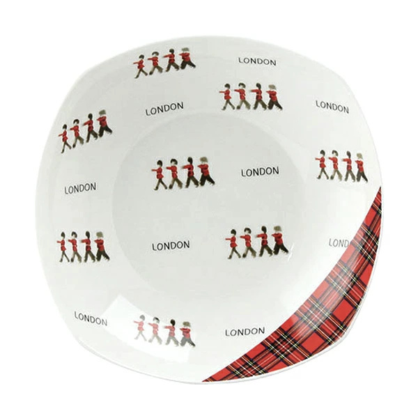 白地にアルファベットや近衛兵、宮殿の絵柄が可愛らしいプレートです。