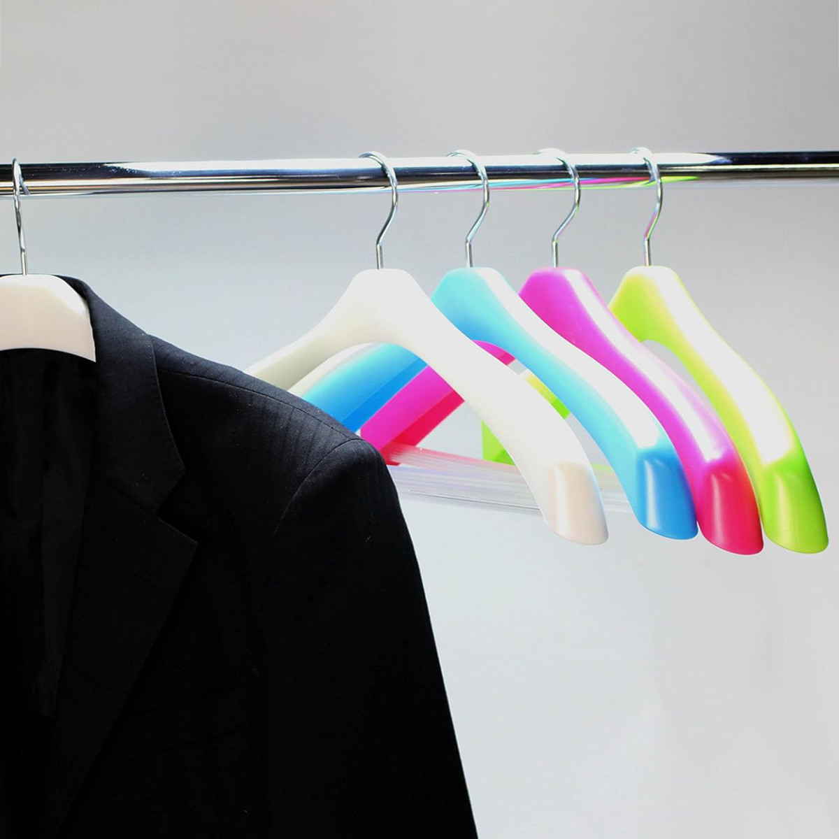 ●掛けた衣類がずり落ちにくい形状なのでジャケット等がきれいに掛けられます。
