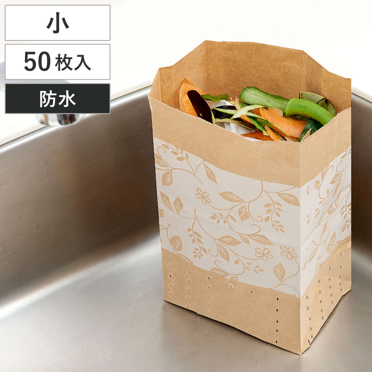 防水紙を使用しているため、生ゴミを入れた状態や濡れた状態でも型崩れしにくくなっています。袋の底に水切り穴が開いているので、捨てるときは紙袋ごと生ゴミを絞ってください。丈夫で破れにくく手も汚れにくいのが特徴です。