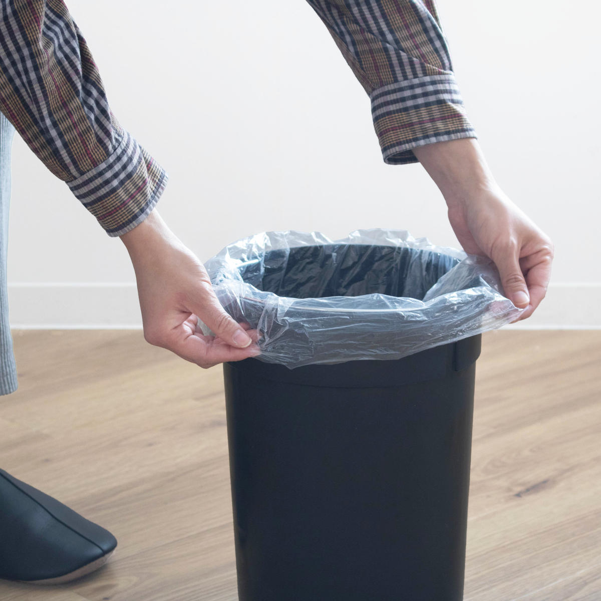 ゴミ袋を内側に固定できるため、外から見えず見た目もきれい。取り替えも簡単で、毎日のゴミ捨てが快適です。