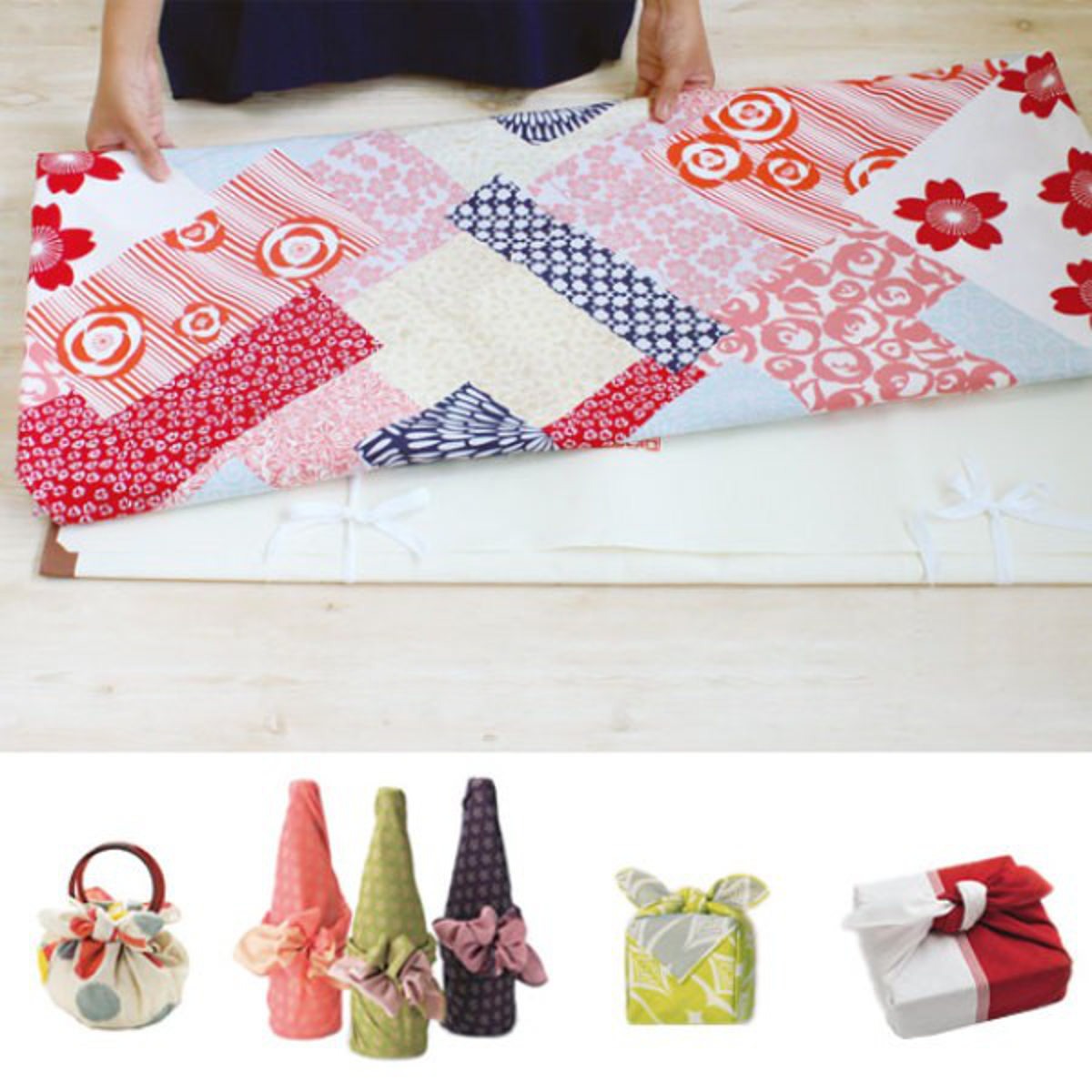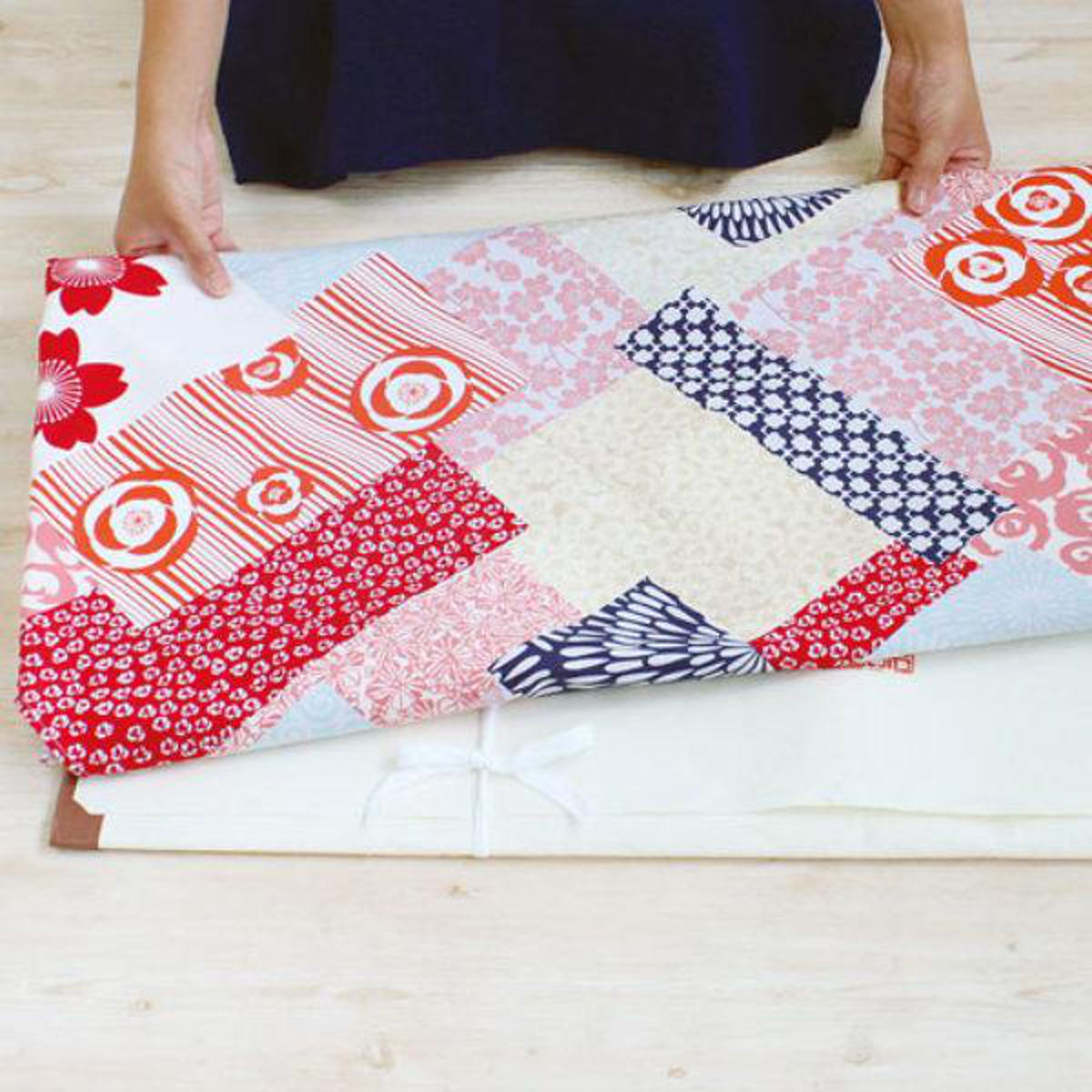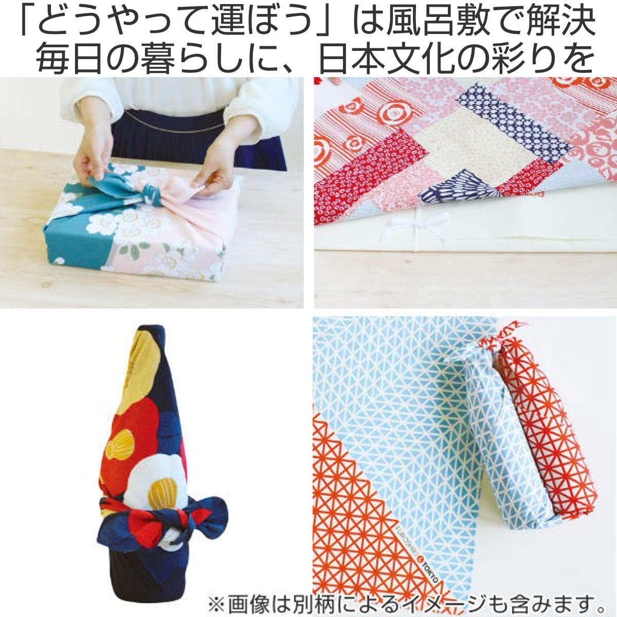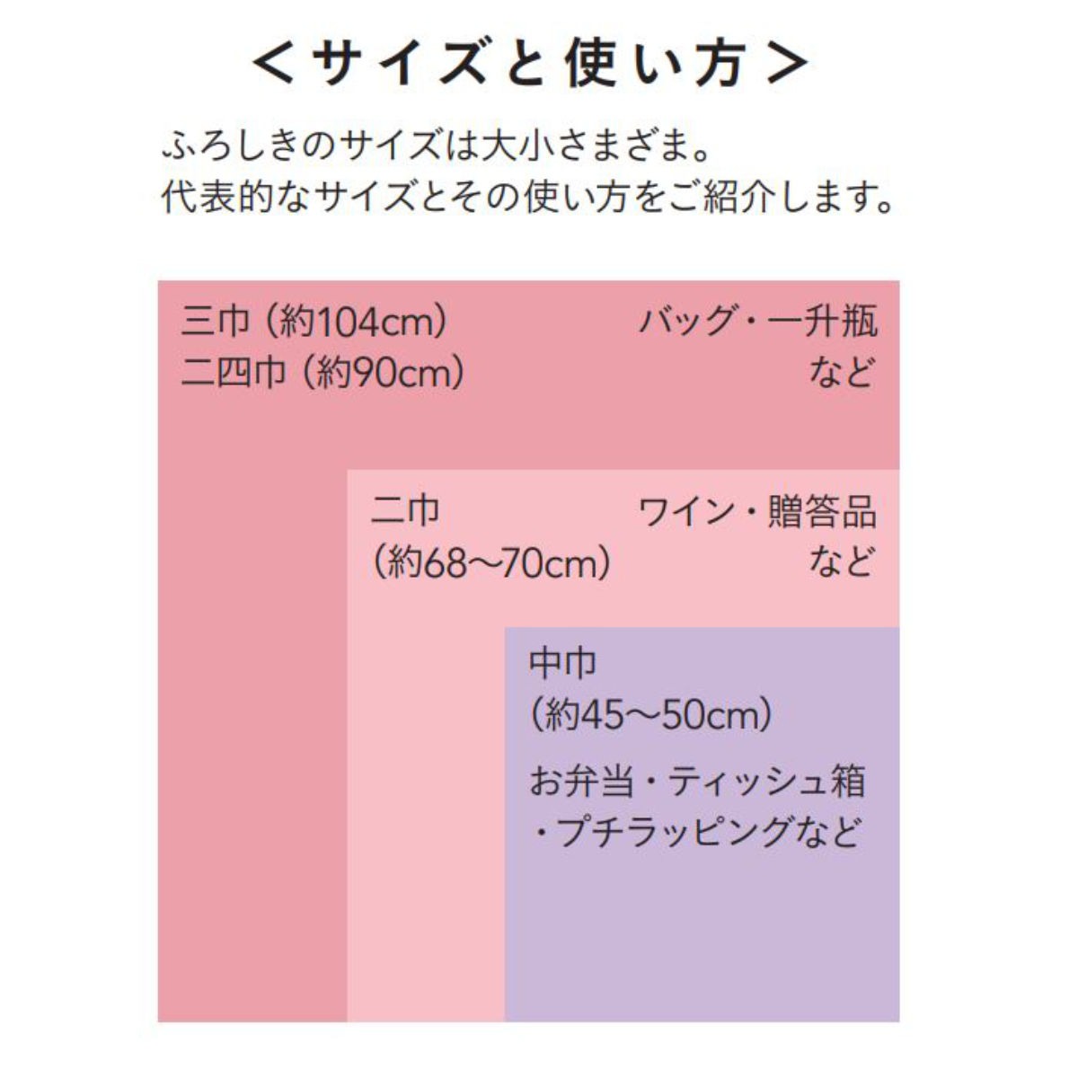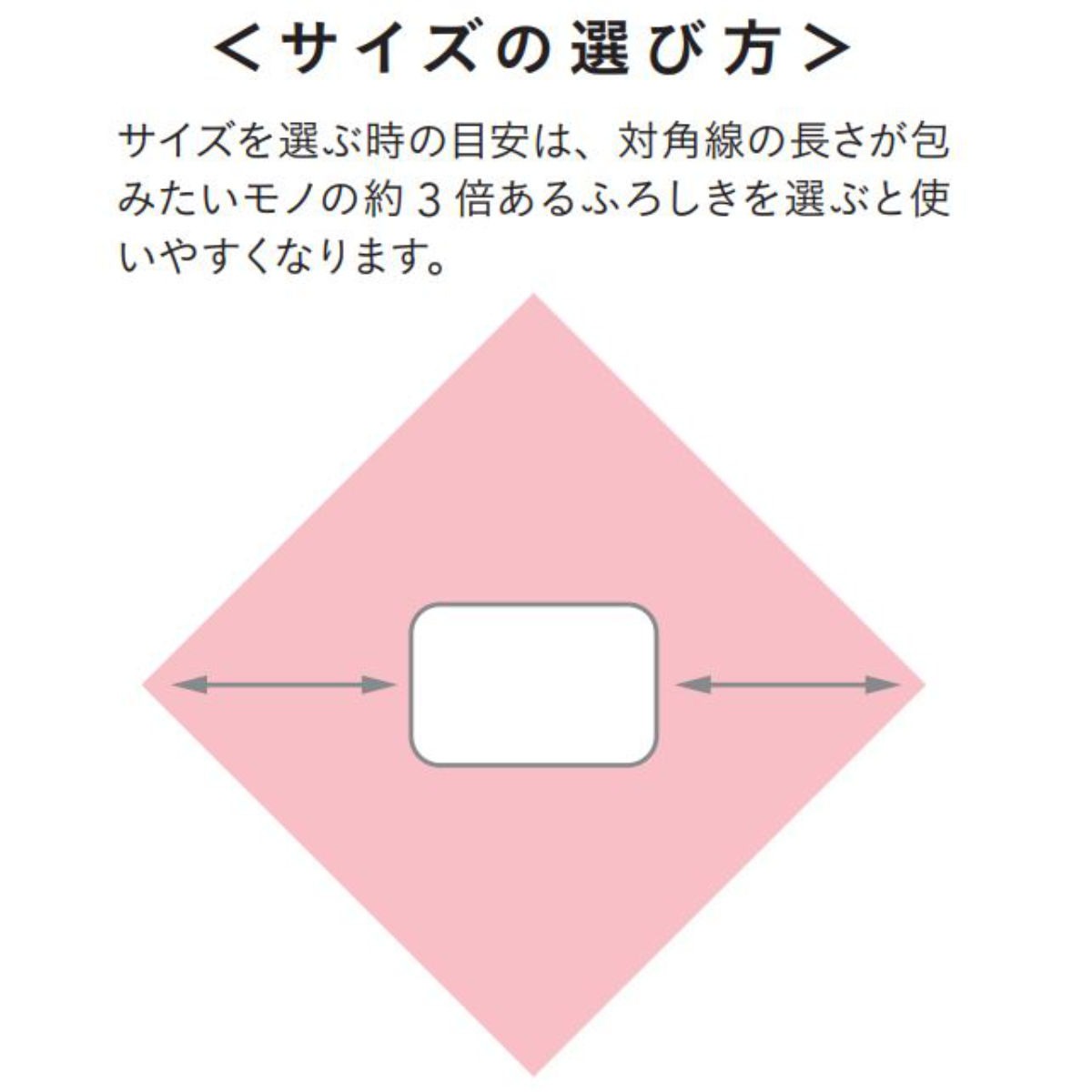 大きなものを包むことができる約145cmの大判タイプ。たとう紙ごと包めるサイズなので、着物の持ち運びにとても便利です。大きい箱や額、布団なども包んで運べます。パッと広げてギュッと片付けられるので、エコバッグやテーブルクロス、ベッドカバーなどのインテリアクロスとしてもおすすめです。
