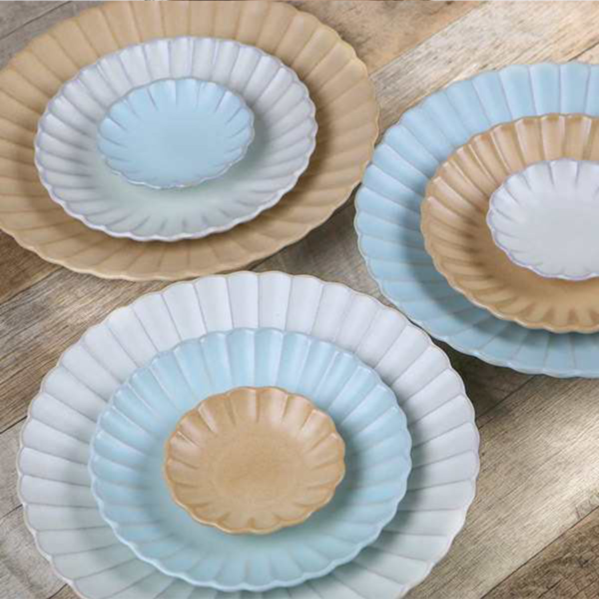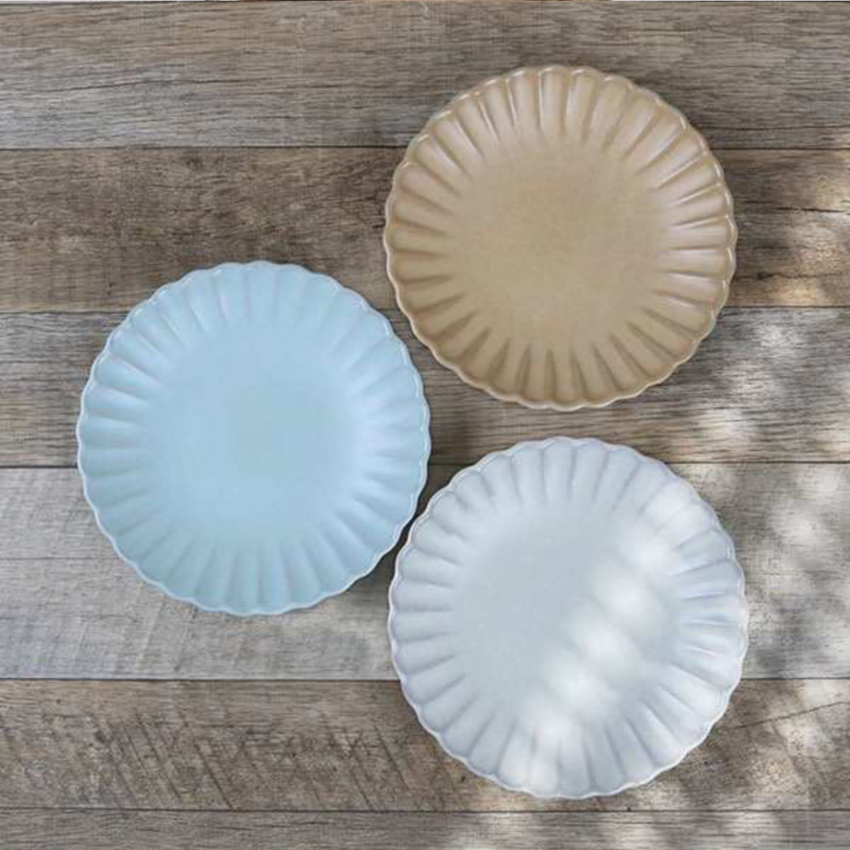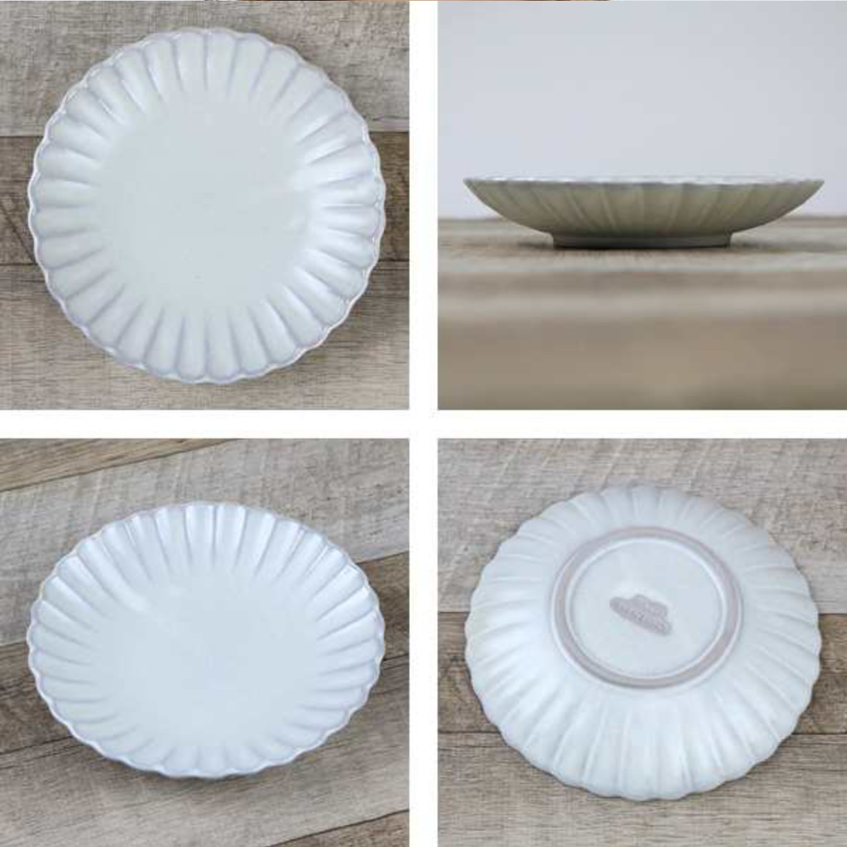 お皿を縁取る花びらは凹凸があり、下の素地の色がほんのり見えるデザイン。素地の風合いが楽しめ、趣を感じられます。