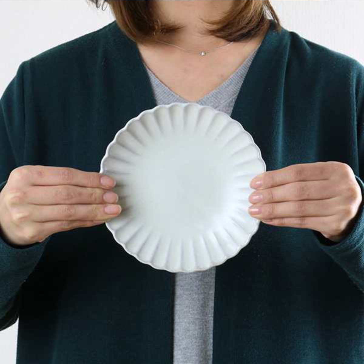 花のフォルムが上品で愛らしい輪花皿です。1人分のデザートや副菜の盛り付け、取り分け皿に使いやすい大きさです。