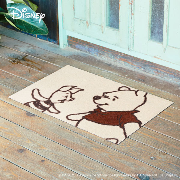 くまのプーさんと仲良しのピグレットの、手描き風のデザインの玄関マットです。シンプルだけどどこかお洒落で温かみのある色使いは、床との相性も抜群です。玄関マットとしてはもちろん、お部屋のラグとしても使用できます。
