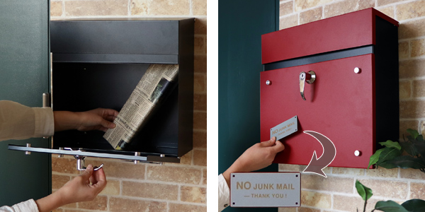 「NO JUNK MAIL」の訳するとセールスお断りのマグネットプレート付き。