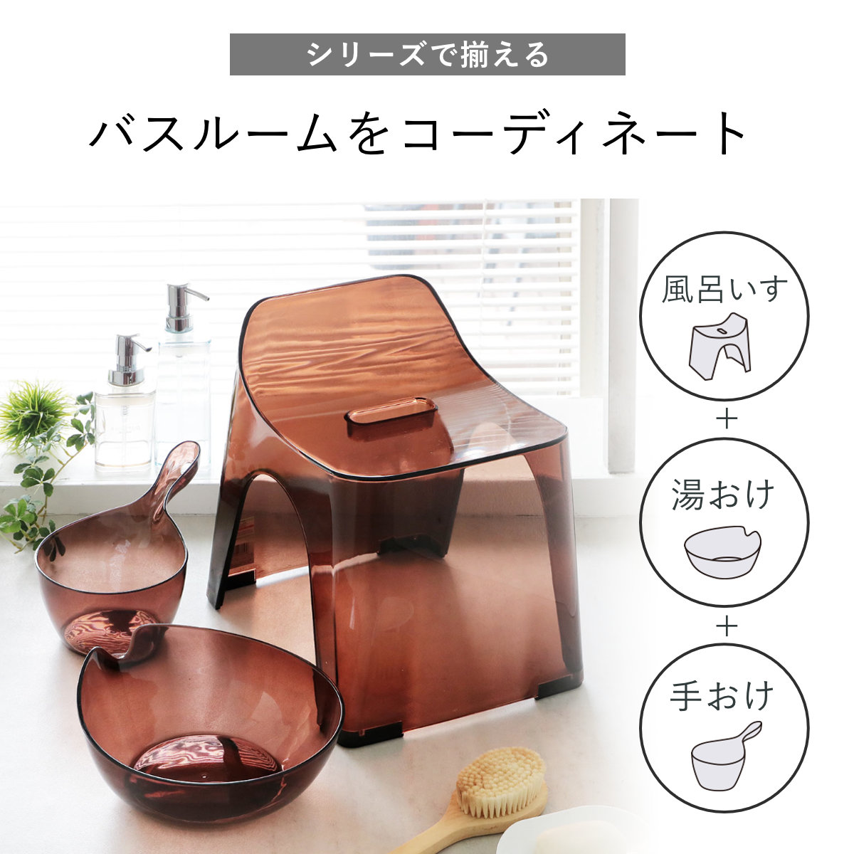 美しいフォルムが魅力的なヒューバスシリーズ。バスチェアだけでなく、「湯おけ」と「手おけ」もシリーズでそろえることで、バスルームに統一感が生まれ、より美しく、居心地のいい空間に。