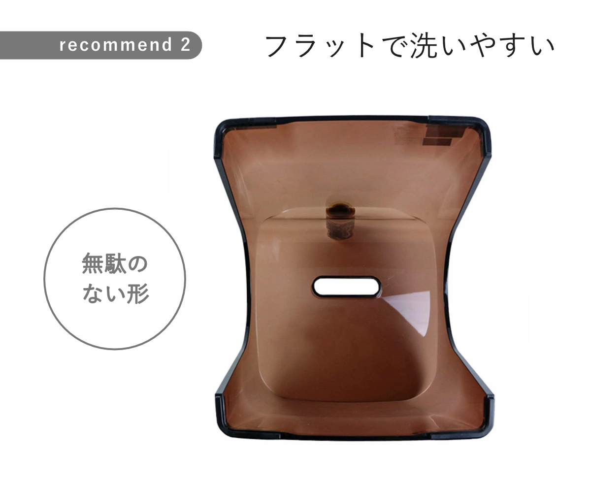 滑らかで繋ぎ目のないデザインなので、お手入れが簡単です。 裏面もつるっとした、フラットで洗いやすい形状です。