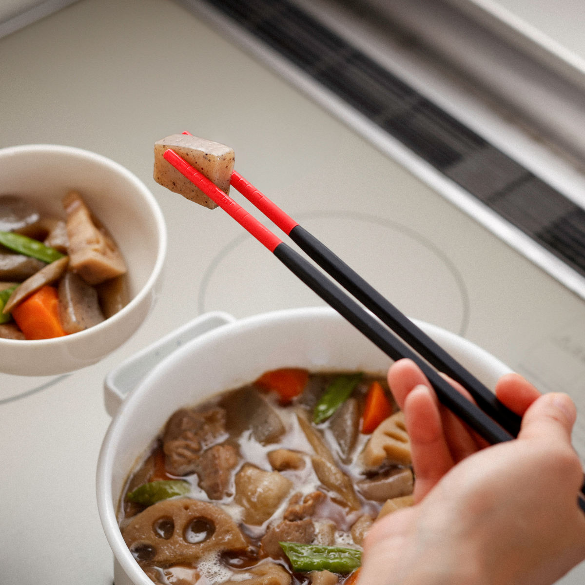 滑りにくく、つかみやすいシリコーン素材の菜箸です。熱に強いシリコーン素材なので、木製などに見られる先端の焦げつきを防ぎます。