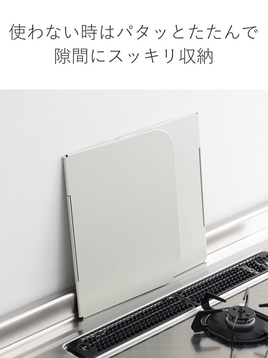 使わないときは折りたたんでコンパクトに。コンロ横やシンク下、棚の隙間など、省スペースにすっきり収納できます。持ち運びもしやすく、BBQなどのアウトドアでも活躍。油はね対策や風除けとしても便利に使えます。