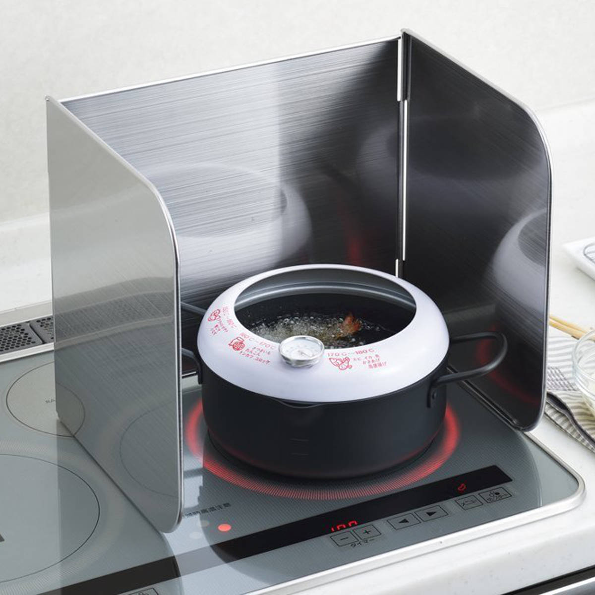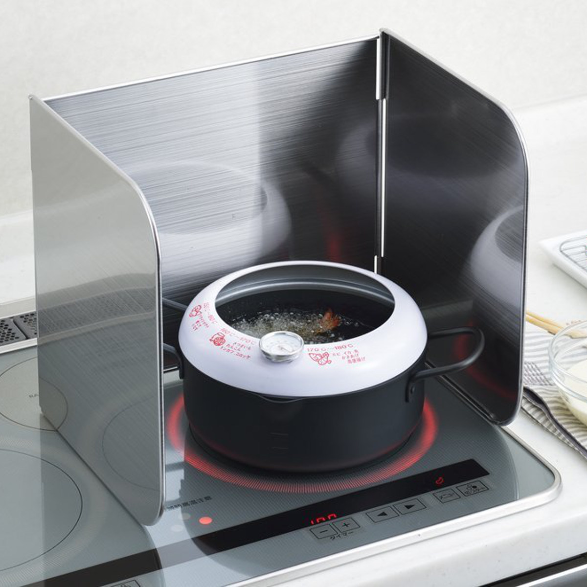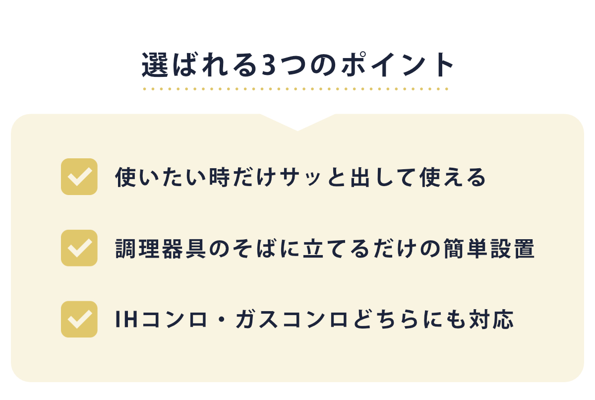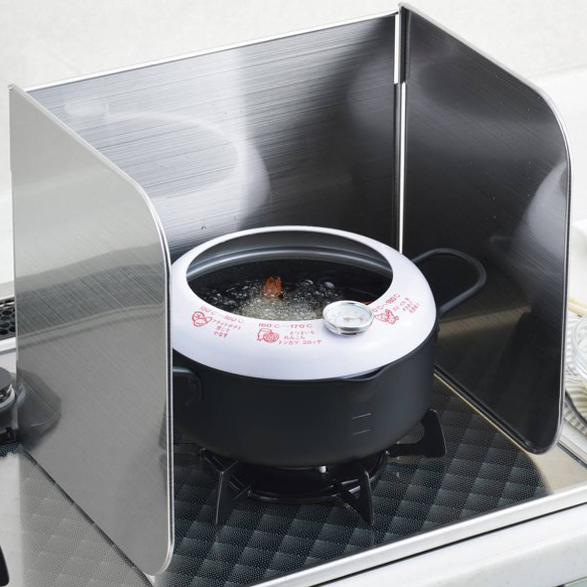 IHコンロにもガスコンロにも対応。ご家庭のキッチン環境を選ばず使用でき、安定感のある設計で油はねや汚れをしっかりガード。毎日の調理を快適にサポートします。