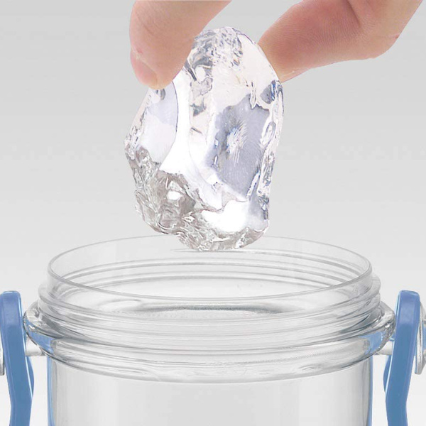パッキン2つとキャップユニット、本体のみなのでパーツが少なくお手入れも簡単にできます。プラスチック製なので食洗機も使えます。また、水筒の口は広口なので大きな氷も入れやすくなっています。