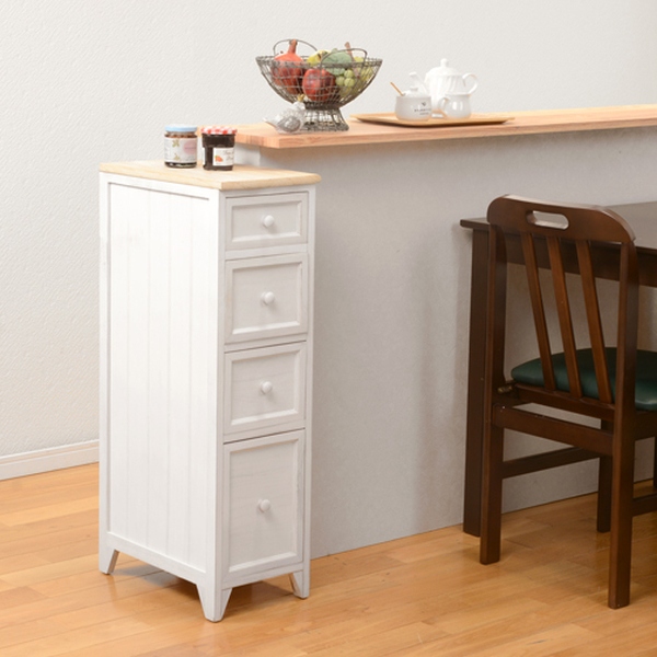 スリムチェスト 4段 桐チェスト カントリー調 シャビーウッド 幅25cm ( スリムラック 収納チェスト 収納 引き出し キャビネット 天然木 完成品 スリムタイプ すきま収納 引出し収納 木製 ホワイト ナチュラル おしゃれ )