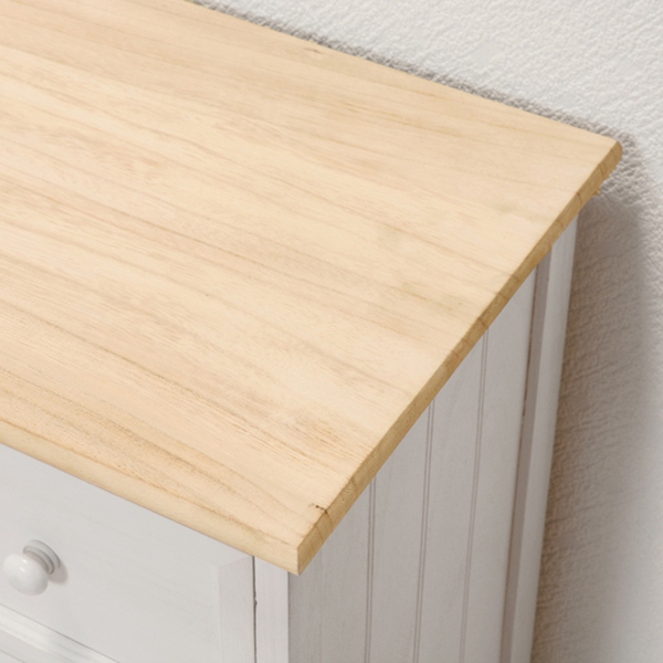 桐材を贅沢に使用しており、表情豊かな木目がお部屋に温もりを与えてくれます。側面のサイドラインは、カントリー調の雰囲気を感じさせるこだわりの仕上がりになっています。