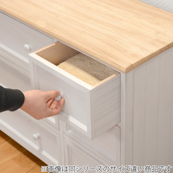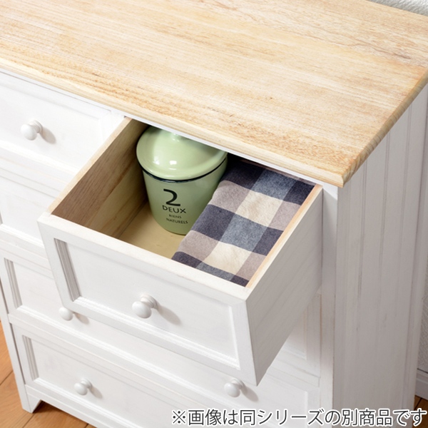 アンティーク塗装を施した、かすれたホワイトカラーが魅力的な愛らしいチェストです。どこか懐かしい素朴なテイストは、お部屋をお洒落な空間に演出します。また、チェストは完成品なので、取り出してすぐに使用する事ができます。