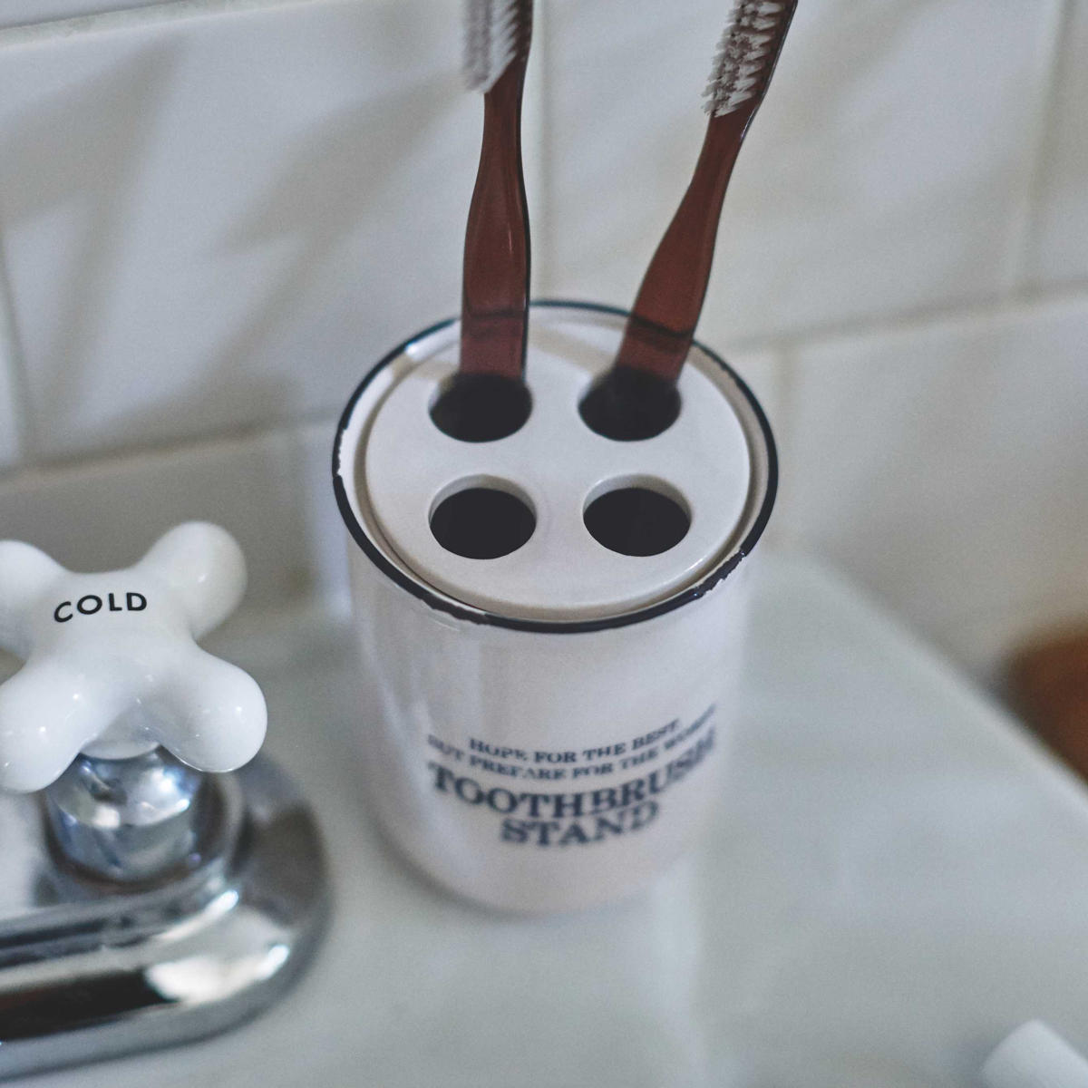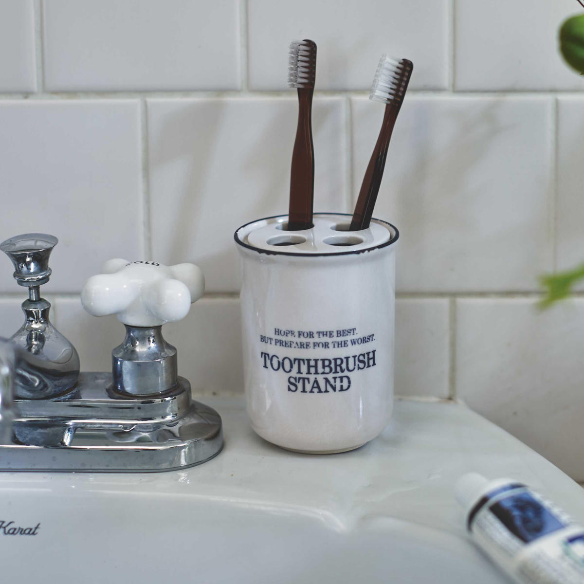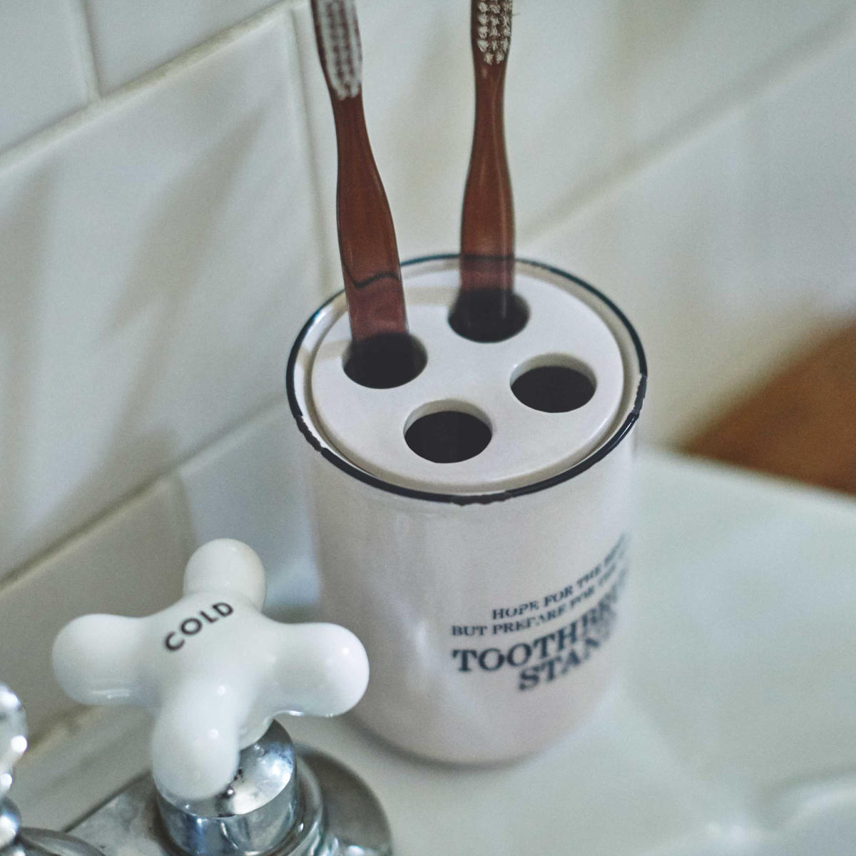 洗面スペースやバスルームをワンランク上の空間に仕上げる、爽やかなデザインのトゥースブラシスタンドです。最大4本まで立てられるので家族全員の歯ブラシを収納できます。
