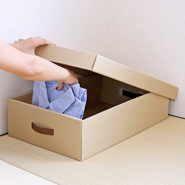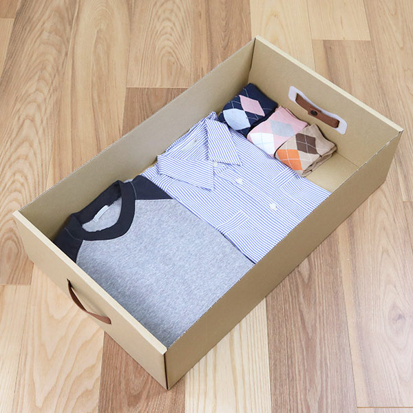 薄手の衣類やタオルの収納に便利なダンボール製の収納ボックスです。軽くて持ち運びやすく組み立ても簡単です。短期のイベント、出張、1人暮らし、短期のイベント、出張や転勤が多い方の、一時的な衣類収納として最適です。