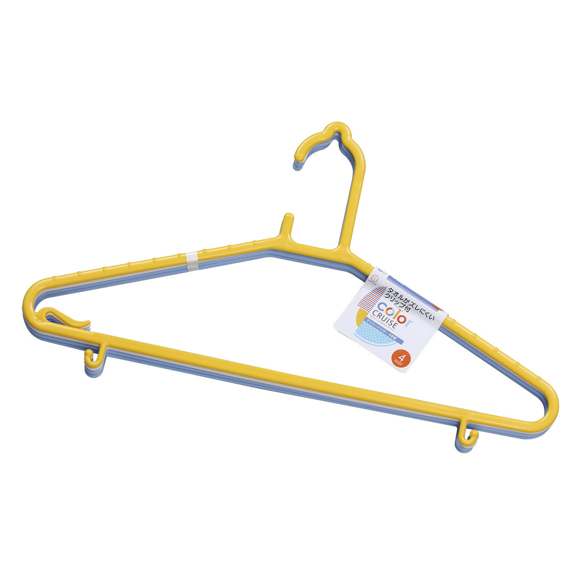 タオルなどがズレにくいクリップ付きのシンプルなハンガー4本組です。薄くて、かさばらず、コンパクトに収納できます。