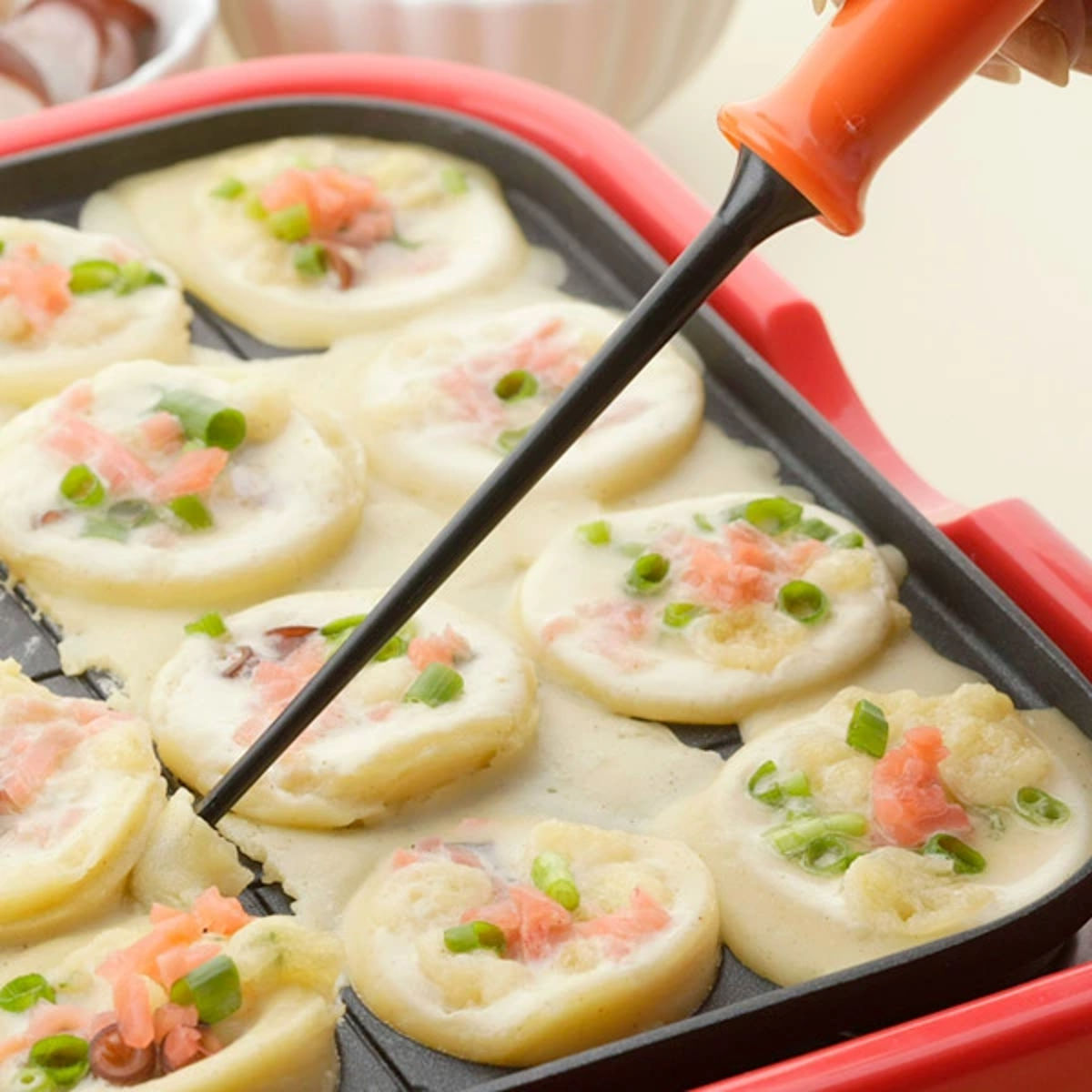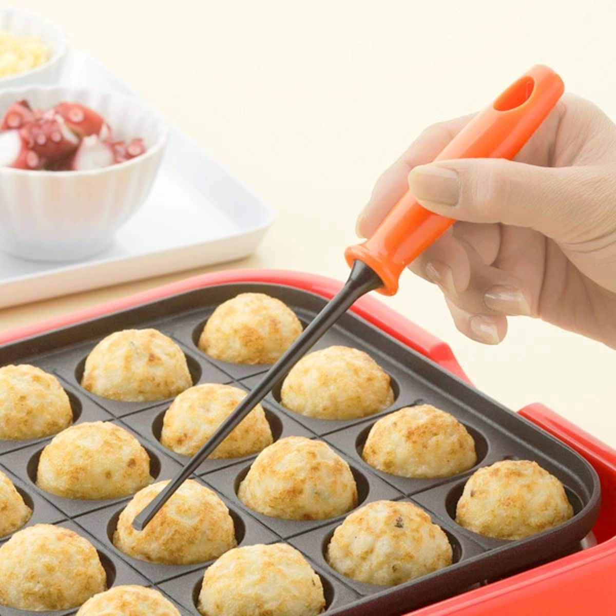 ●コーティング加工のたこ焼きプレートをキズつけにくく、たこ焼きをくるっと簡単に返せます。