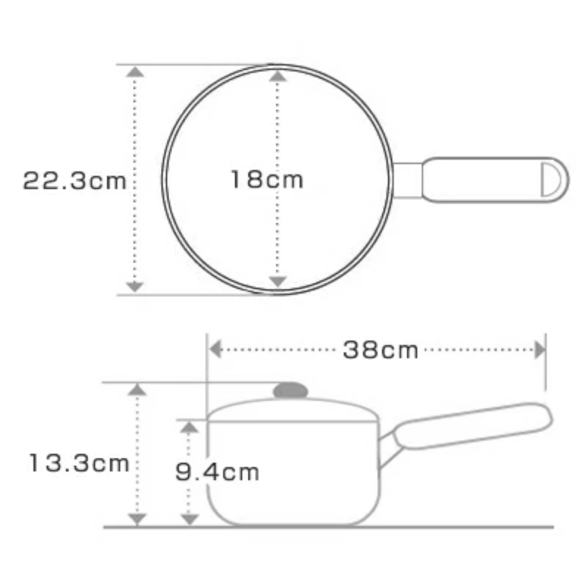 ![]() 片手深型鍋 16cm | ![]() 片手深型鍋 18cm 【▲このページの商品】 | ![]() 両手深型鍋 20cm |