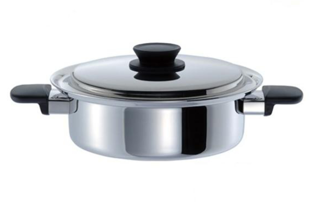 | 材質 | 本体:3層クラッド材(内側:ステンレス鋼、中心:アルミニウム合金、外側:ステンレス鋼) 本体内面:ラセン研磨仕上げ 本体外面:ミラー研磨仕上げ 蓋:ステンレス鋼 ハンドル:フェノール樹脂 蓋ツマミ:フェノール樹脂 |