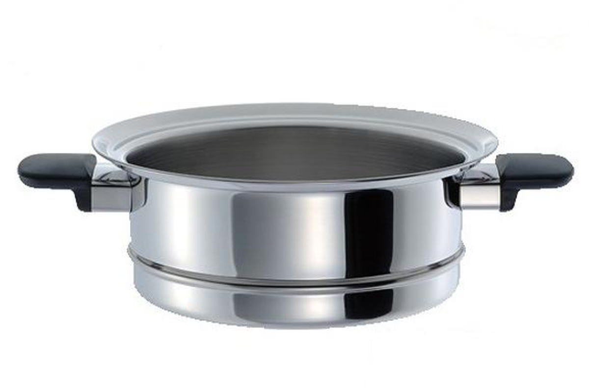 マジカルユミック「エテルナシリーズ」の23cmの鍋に対応する蒸し器です。約100度の水蒸気で包み込むように加熱することで、食材をしっとり、ふっくら、やわらかく仕上げます。素材本来のうま味や甘みをしっかり引き出し、油を使わずにヘルシーに調理できます。
