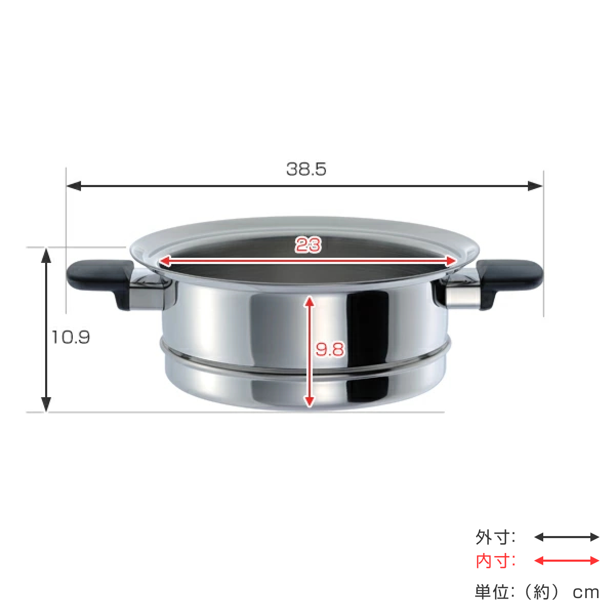 | サイズ | 外寸:約 幅38.5×奥行28.1×高さ10.9(cm) 内寸:約 高さ9.8(cm) 内径:約 23(cm) |