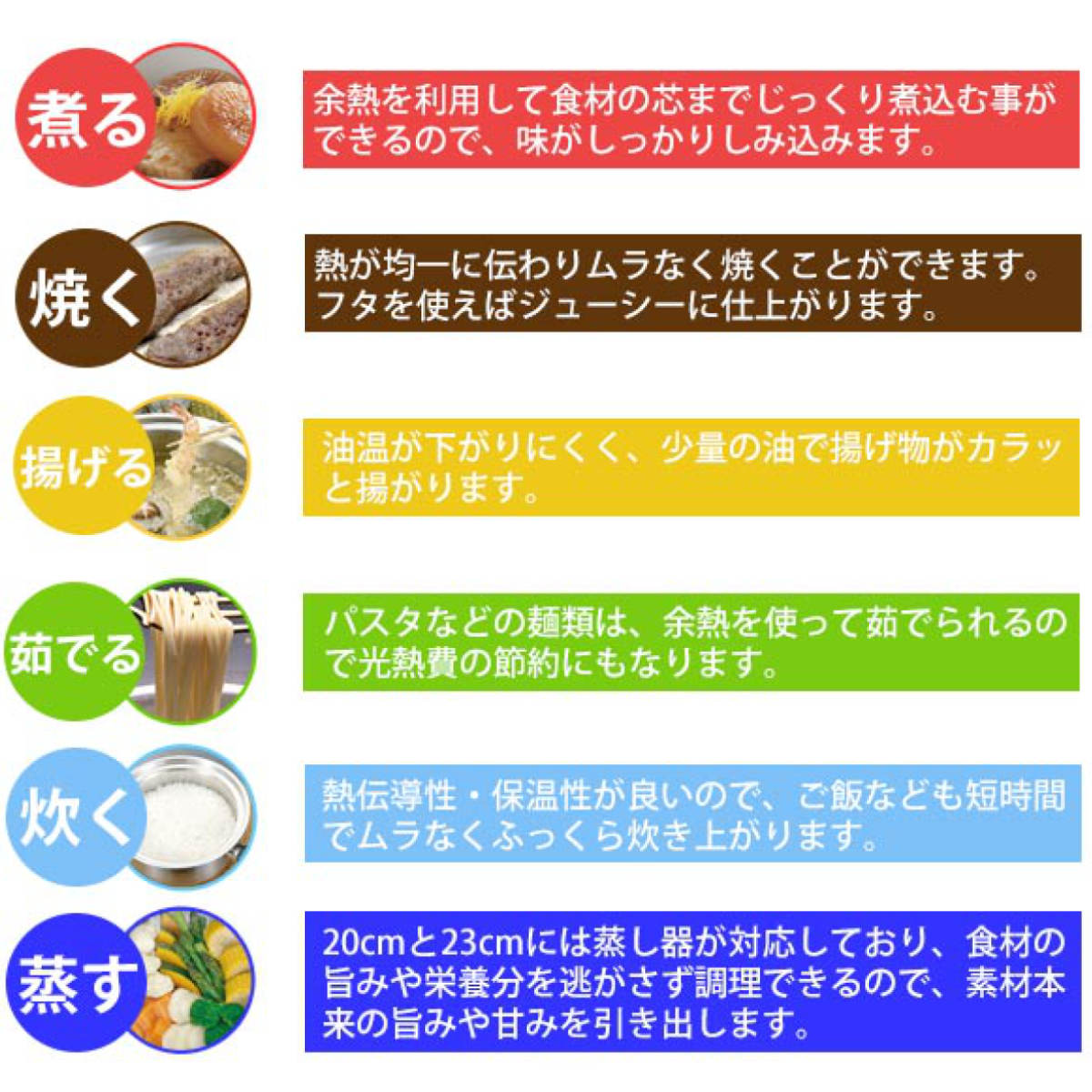 | 注意事項 | ※マジカルユミック「エテルナシリーズ」23cmの鍋に対応しています。 ※保証には納品書が必要です。 ※商品ページ内には別の商品を含む画像を使用しています。 |