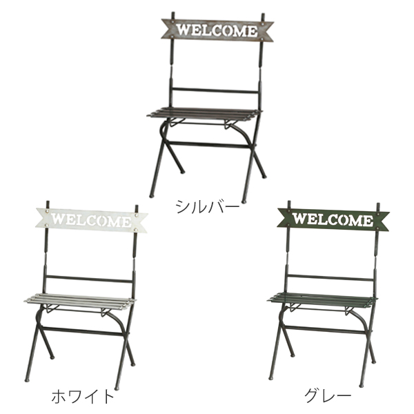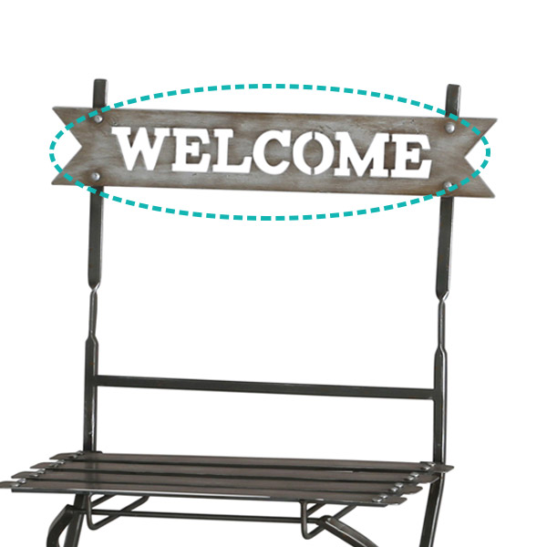 背もたれ部分は、リボン型フレームに“WELCOME”と型抜きされていて、エントランスやお庭でゲストをお出迎えしてくれます。