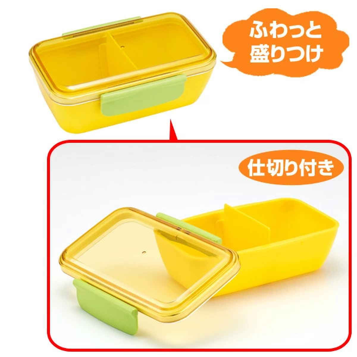 蓋がドーム型になっているので、おかずが潰れずにふんわり盛り付けることができます。ランチボックスは、仕切り付きでご飯とおかずがしっかり分けて入れられます。